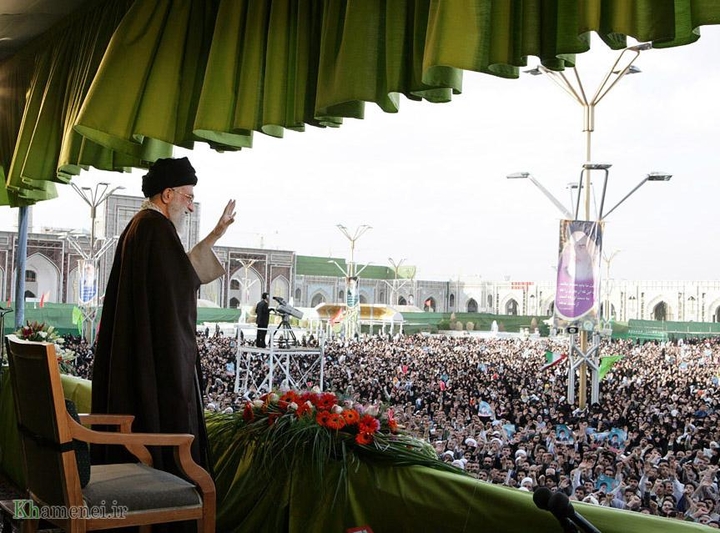 Je remercie Dieu qui une fois de plus, m'a accordé la faveur d'être en votre compagnie au début de ce nouvel an, et dans l’enceinte du mausolée de l'Imam Abul Hasan Al-Reza (s). Je vous présente toutes mes félicitations à l'occasion de la fête de Norouz qui est pour notre peuple, une fête nationale et symbolique, et à l’occasion de l'anniversaire de la naissance du Saint Prophète (SAWA) et de celui de l’Imam Sadiq (s).