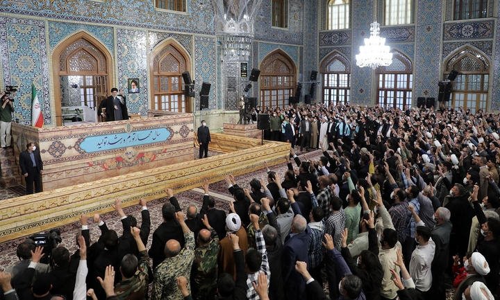 En expliquant les indications manifestes de la cohésion interne et de la force de la nation iranienne, le Guide suprême de la Révolution islamique a souligné « le fait que la nation a surmonté la chaîne d'hostilités consécutives et de plusieurs décennies de l'ennemi contre les puissances arrogantes du monde ». Il a en outre déclaré : « Quel pays et quelle révolution connaissez-vous qui a été capable de résister aux coups des pays les plus puissants du monde ? La nation iranienne s'est fermement opposée à une longue chaîne de complots de l'ennemi, y compris des tentatives de coups d'État, des sanctions et des attaques médiatiques. »
