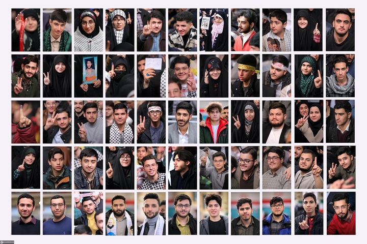 Lorsque nous sommes entrés, l'enthousiasme de la jeunesse était plus évident dans l'enceinte de Husseinyah Imam Khomeiny (RA). Avant l’arrivée du Guide suprême, le bruit de quelqu’un récitant de la poésie se fit entendre dans la salle. Un poème épique aux thèmes politiques a été récité. Après la plupart des couplets, les jeunes l’applaudissaient. L'un des versets était :