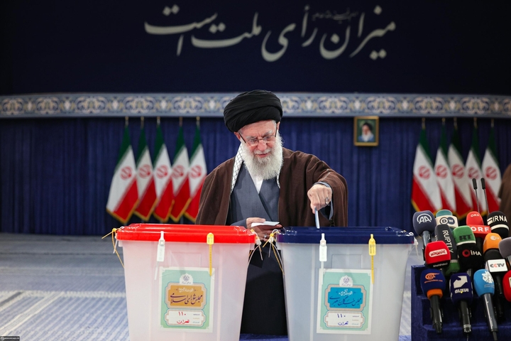 Le Guide a mis son bulletin de vote dans l'urne numéro 110 dans l'enceinte de Husseinyah Imam Khomeiny, en présence de plus d'une centaine de journalistes et cameramen des médias locaux et internationaux.