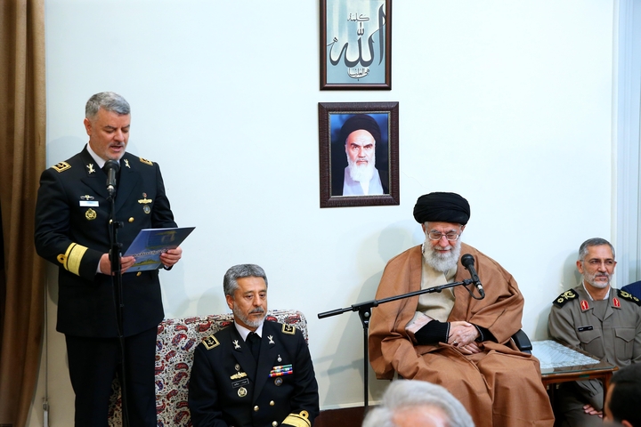 Avant le discours du Guide suprême de la Révolution islamique, le commandant en chef de la marine, le contre-amiral Khanzadi a évoqué la mission extraterritoriale que se sont fixée les forces navales iraniennes et qui relève à la fois de la dissuasion, de la sécurisation des voies maritimes et du renforcement de la présence iranienne dans les eaux libres, ainsi que le développement et la création des moyens de dissuasion dans les côtes iraniennes de Makran.