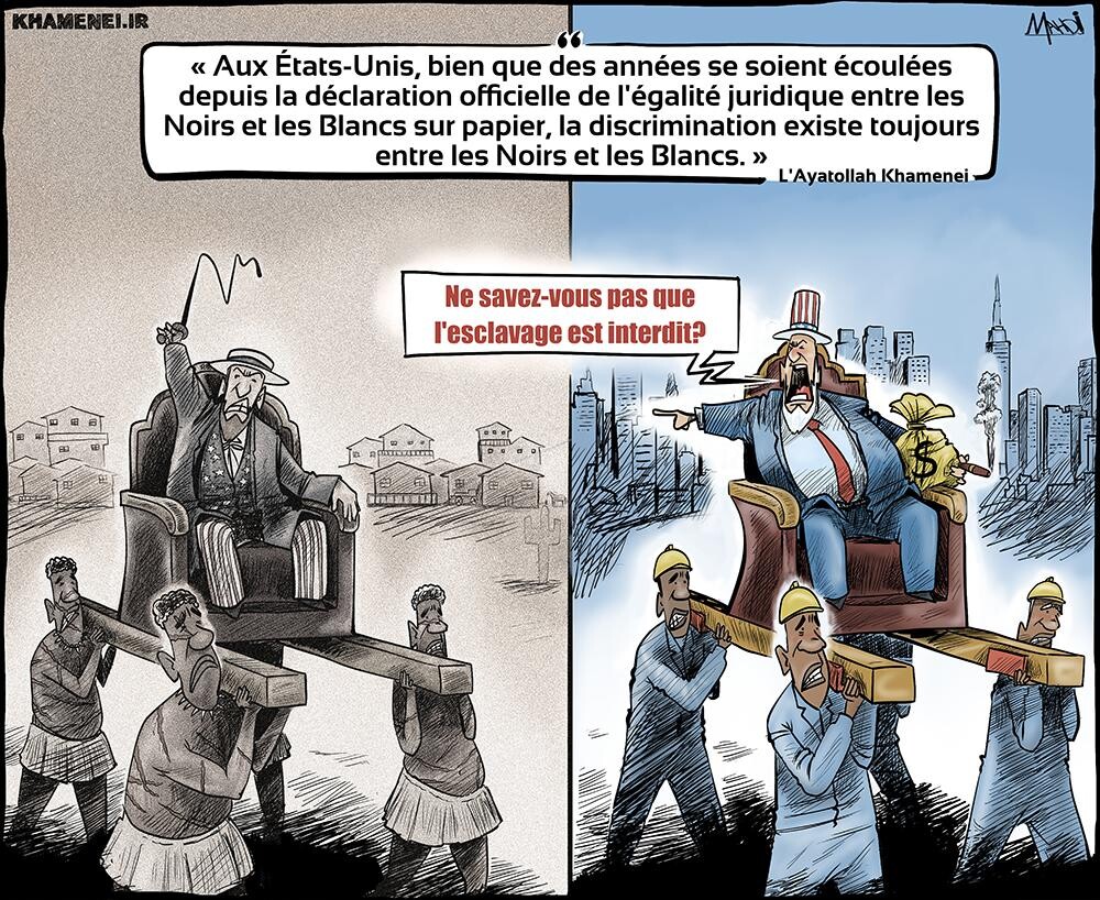 Pendant plusieurs siècles, les Américains ont exercé des pressions sur les noirs et il y a beaucoup de livres à ce sujet, comme le livre " Racines ", [roman de l'écrivain américain Alex Haley, publié en 1976, ndt] qui est un livre très utile pour comprendre une partie de ces crimes. Comment l'homme moderne d'aujourd'hui peut-il oublier ces événements alors qu'après tous ces crimes, il existe encore des discriminations entre les Blancs et les Noirs en Amérique ?