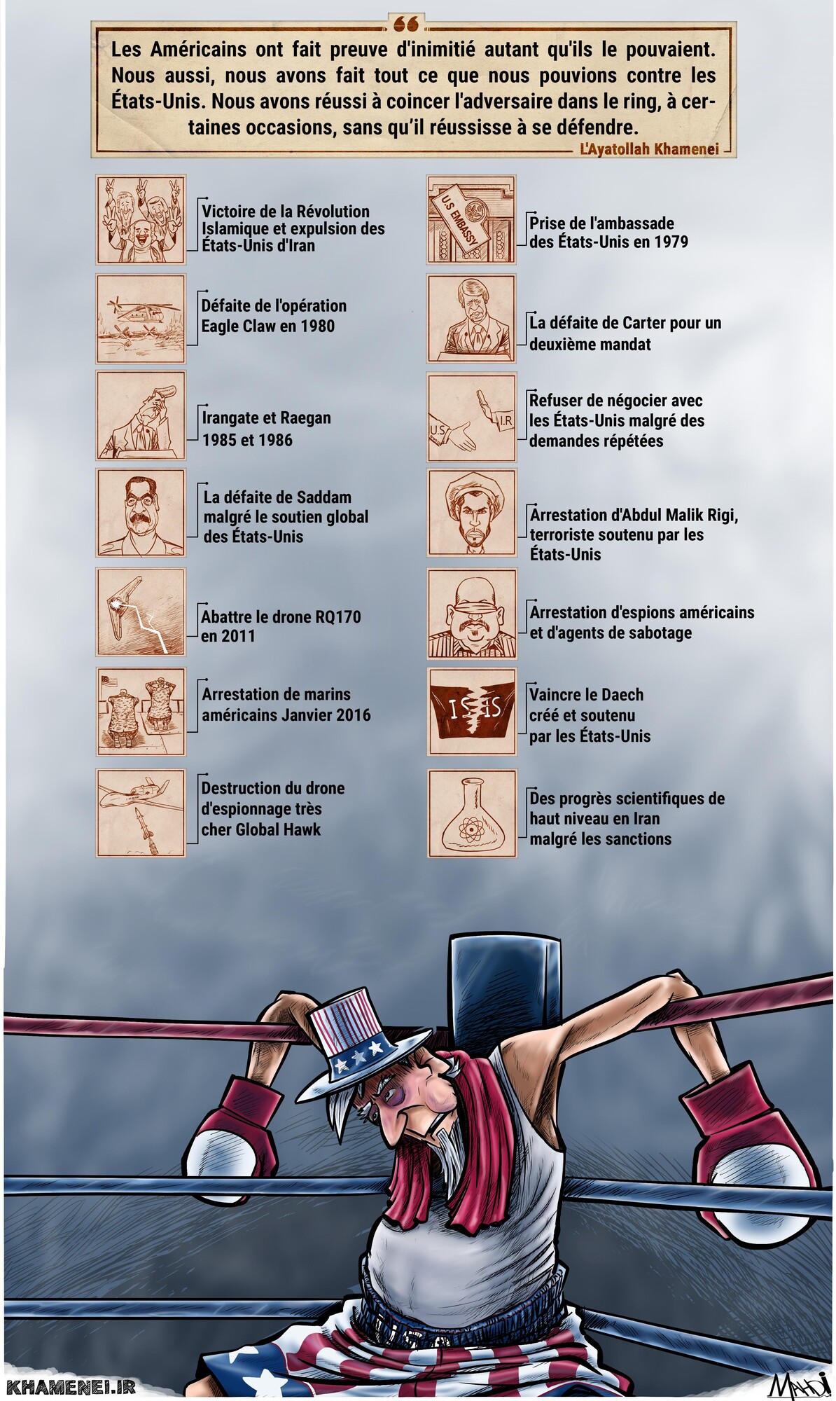 Les Américains ont fait preuve d'inimitié autant qu'ils le pouvaient. Nous aussi, nous avons fait tout ce que nous pouvions contre les États-Unis. Nous avons réussi à coincer l'adversaire dans le ring, à certaines occasions, sans qu’il réussisse à se défendre.