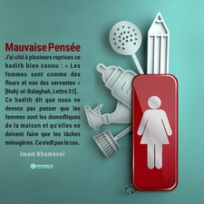 J'ai cité à plusieurs reprises ce hadith bien connu : « Les femmes sont comme des fleurs et non des servantes » [Nahj-ul-Balaghah, Lettre 31 ]. Ce hadith dit que nous ne devons pas penser que les femmes sont les domestiques de la maison et qu'elles ne doivent faire que les tâches ménagères. Ce n'est pas le cas. L’Imam Khamenei, 19 avril 2014