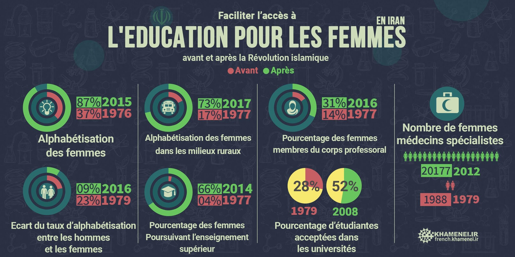 Les femmes ont un rôle dans les activités sociales, politiques, scientifiques et économiques. Du point de vue de l'islam, l'arène des activités scientifiques, économiques et politiques des femmes est complètement ouverte. Si quelqu'un décide de priver les femmes de travaux scientifiques et d'activités économiques, politiques et sociales sur la base d'un point de vue islamique, il a agi contre le décret divin.