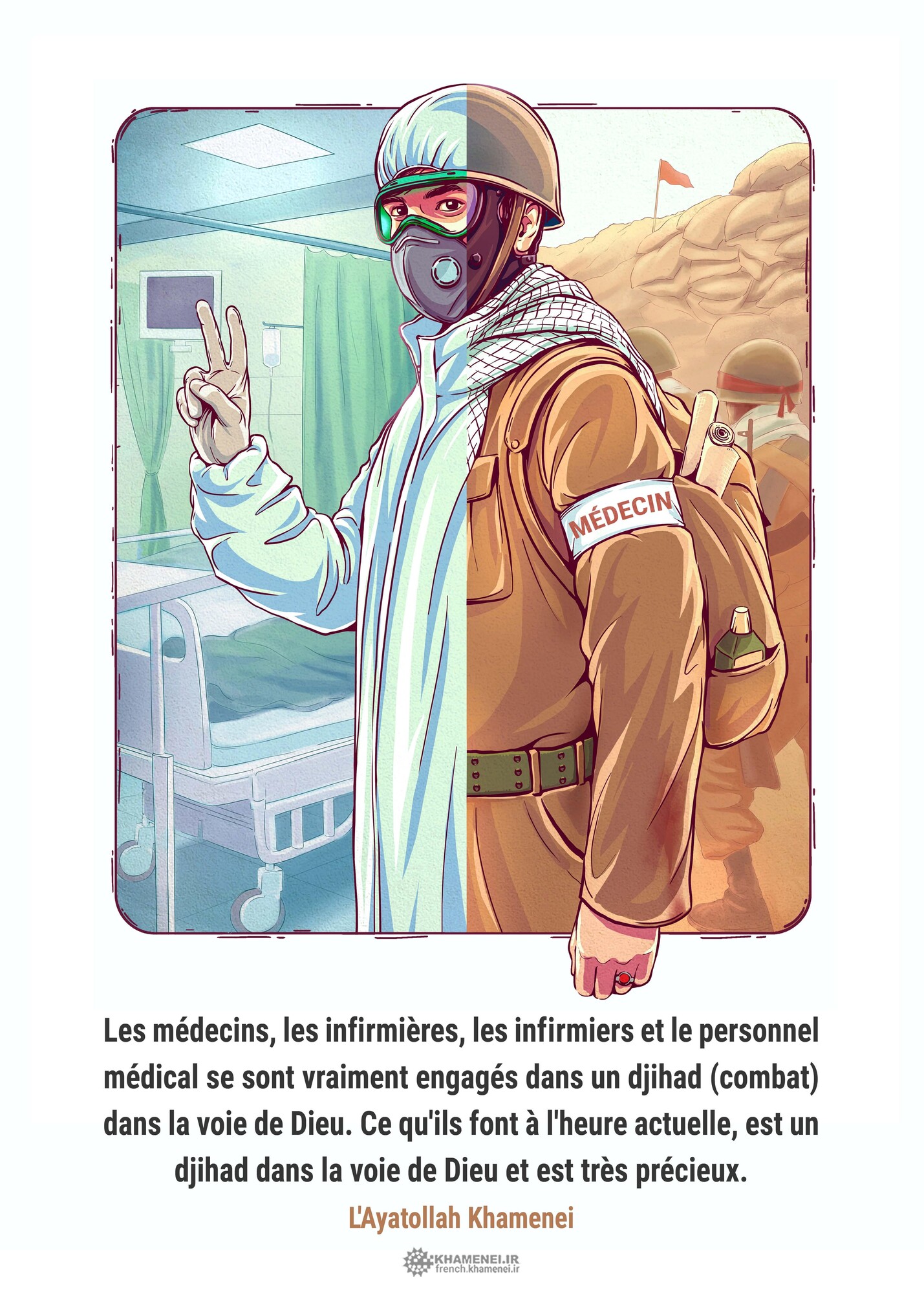 Les médecins, les infirmières, les infirmiers et le personnel médical se sont vraiment engagés dans un djihad (combat) dans la voie de Dieu. Ce qu'ils font à l'heure actuelle, est un djihad dans la voie de Dieu et est très précieux.