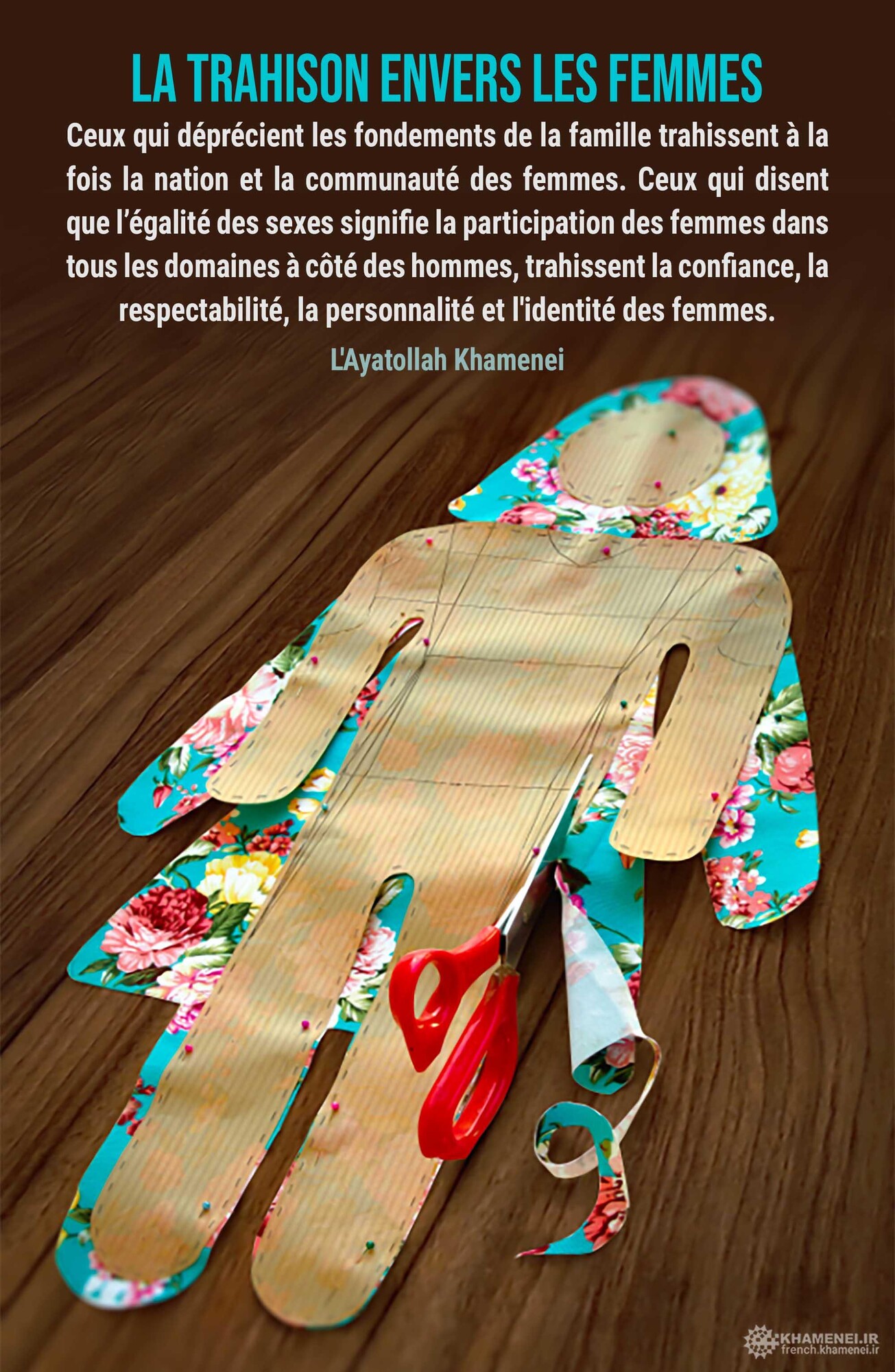 Ceux qui déprécient les fondements de la famille trahissent à la fois la nation et la communauté des femmes. Ceux qui disent que l’égalité des sexes signifie la participation des femmes dans tous les domaines à côté des hommes, trahissent la confiance, la respectabilité, la personnalité et l'identité des femmes. 8 mars 2018