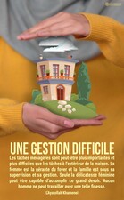 Les tâches ménagères sont peut-être plus importantes et plus difficiles que les tâches à l'extérieur de la maison. La femme est la gérante du foyer et la famille est sous sa supervision et sa gestion. Seule la délicatesse féminine peut être capable d’accomplir ce grand devoir. Aucun homme ne peut travailler avec une telle finesse.