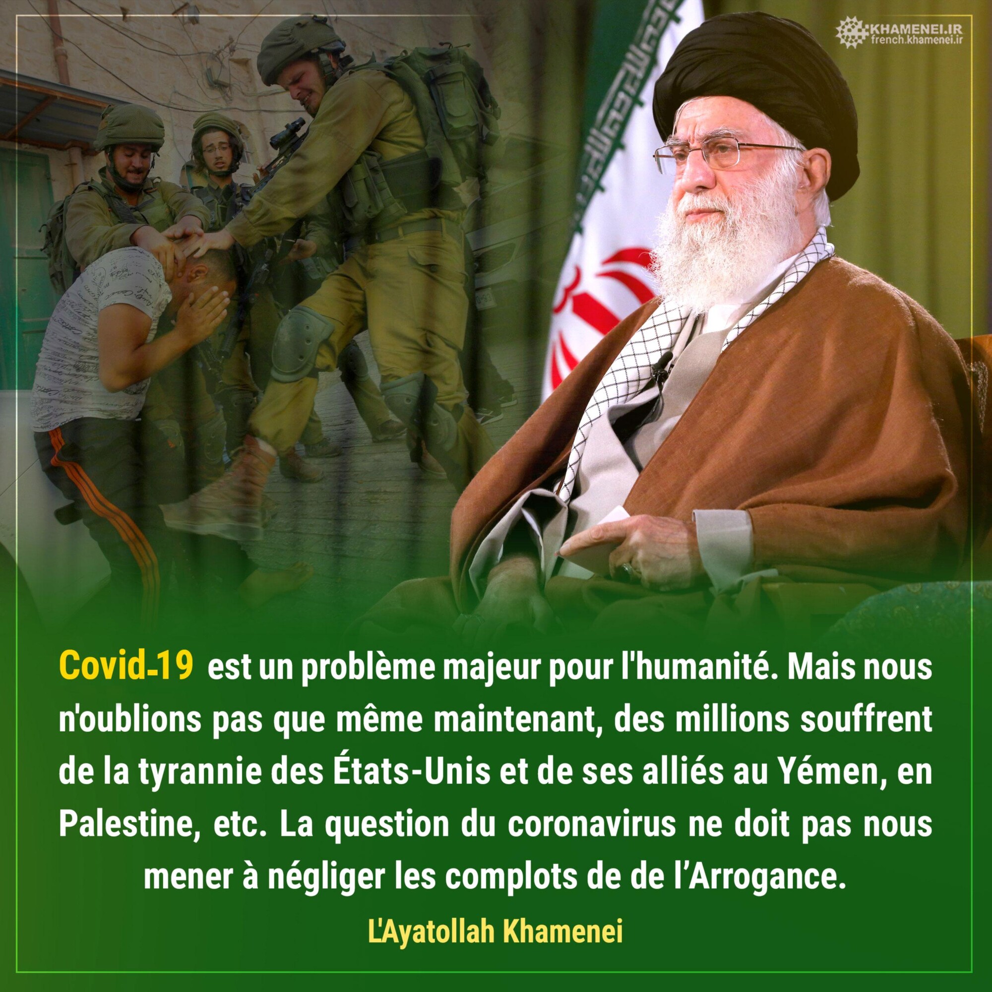 Covid-19 est un problème majeur pour l'humanité. Mais nous n'oublions pas que même maintenant, des millions souffrent de la tyrannie des États-Unis et de ses alliés au Yémen, en Palestine, etc. La question du coronavirus ne doit pas nous mener à négliger les complots de de l’Arrogance.