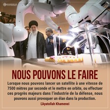 Malheureusement, certains dans le pays, disent constamment que ce n'est pas possible et que nous ne pouvons pas (faire cela) alors que nous pouvons le faire. Lorsque nous pouvons lancer un satellite à une vitesse de 7500 mètres par seconde et le mettre en orbite, ou effectuer ces progrès majeurs dans l’industrie de la défense, nous pouvons aussi provoquer un élan dans la production.