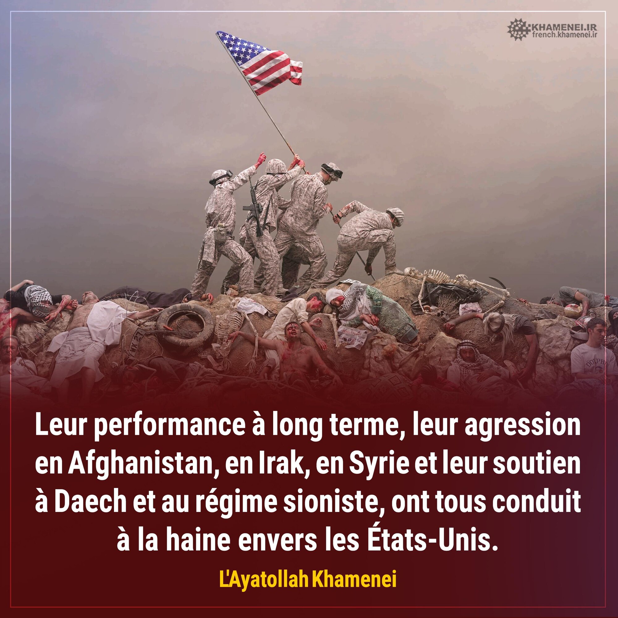 Le bellicisme, l’aide aux gouvernements de mauvaise réputation, la formation des terroristes et le soutien inconditionnel à l'oppression ont fait du gouvernement des États-Unis un gouvernement détesté. Assurément, les Américains ne resteront pas en Irak et en Syrie, et seront expulsés