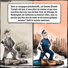 Les valeurs humaines ont été anéanties et piétinées dans ce pays. Les discriminations raciales sévissent dans ce pays [les États-Unis]. Quelques jours avant ce débat, dans sa campagne présidentielle, cet homme [Donald Trump] a dit que si vous étiez de couleur - noire ou rouge - et que vous marchiez dans les rues de New York, de Chicago, de Washington, de Californie ou d'autres villes, vous ne pouviez pas être sûrs de rester en vie encore quelques minutes ! […] ! Voilà le racisme américain.
