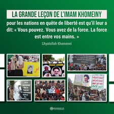 La grande leçon de l’Imam Khomeiny pour les nations en quête de liberté est qu’il leur a dit: « Vous pouvez. Vous avez de la force. La force est entre vos mains. Vous avez juste besoin d'être déterminée et de faire des sacrifices, c'est ainsi que tout peut être accompli».