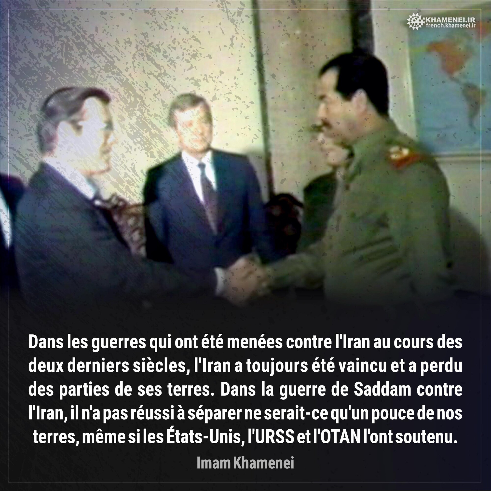 Dans les guerres qui ont été menées contre l'Iran au cours des deux derniers siècles, l'Iran a toujours été vaincu et a perdu des parties de ses terres. Dans la guerre de Saddam contre l'Iran, il n'a pas réussi à séparer ne serait-ce qu'un pouce de nos terres, même si les États-Unis, l'URSS et l'OTAN l'ont soutenu.