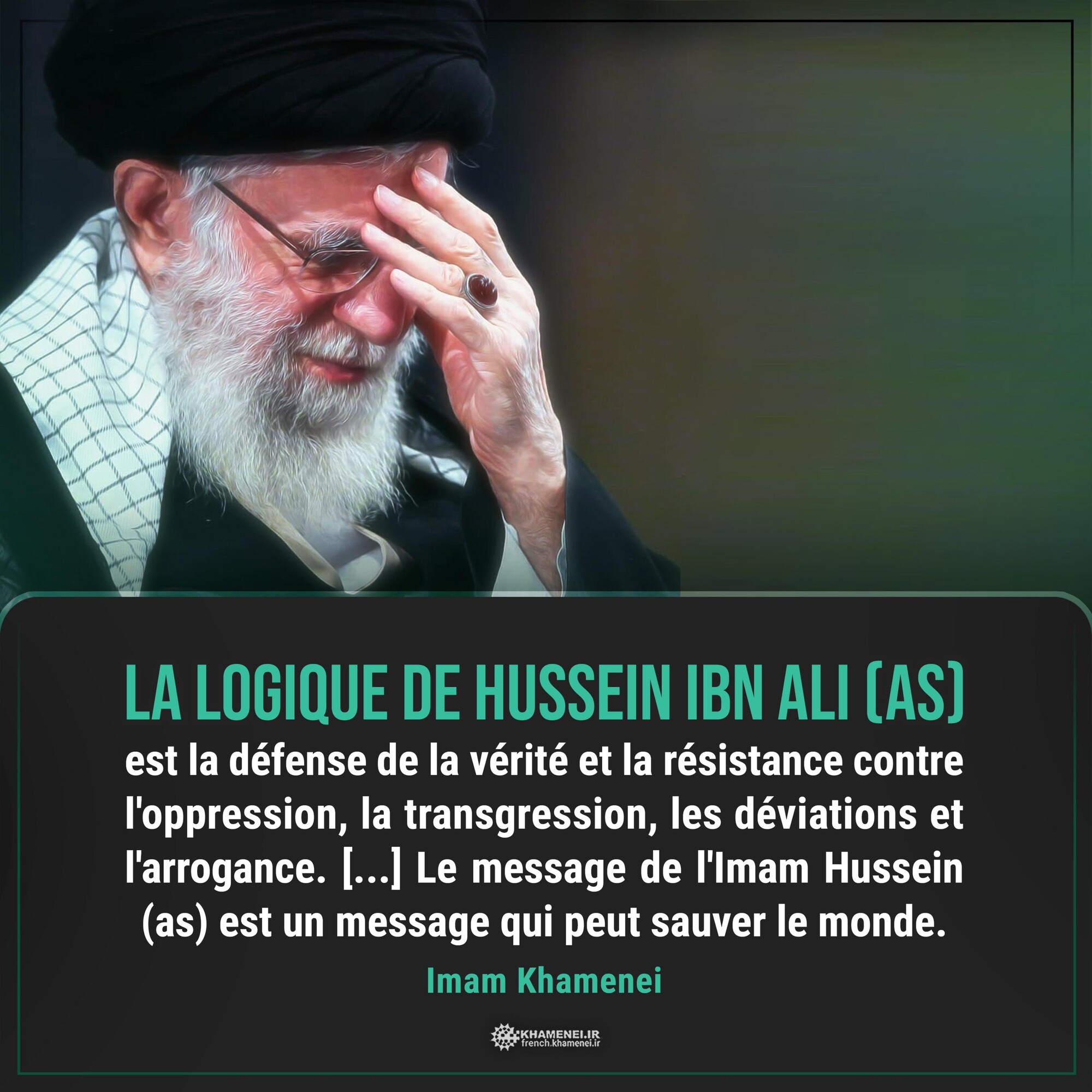 La logique de Hussein ibn Ali (as) est la défense de la vérité et la résistance contre l'oppression, la transgression, les déviations et l'arrogance. [...] Le message de l'Imam Hussein (as) est un message qui peut sauver le monde.