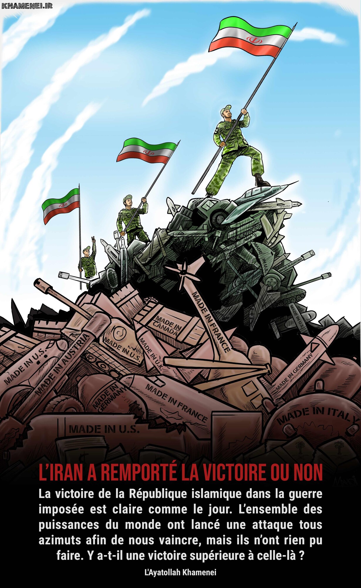 La victoire de la République islamique dans la guerre imposée est claire comme le jour. L’ensemble des puissances du monde ont lancé une attaque tous azimuts afin de nous vaincre, mais ils n’ont rien pu faire. Y a-t-il une victoire supérieure à celle-là ?
