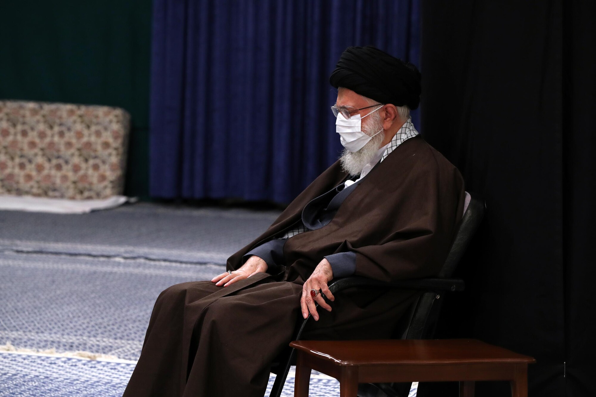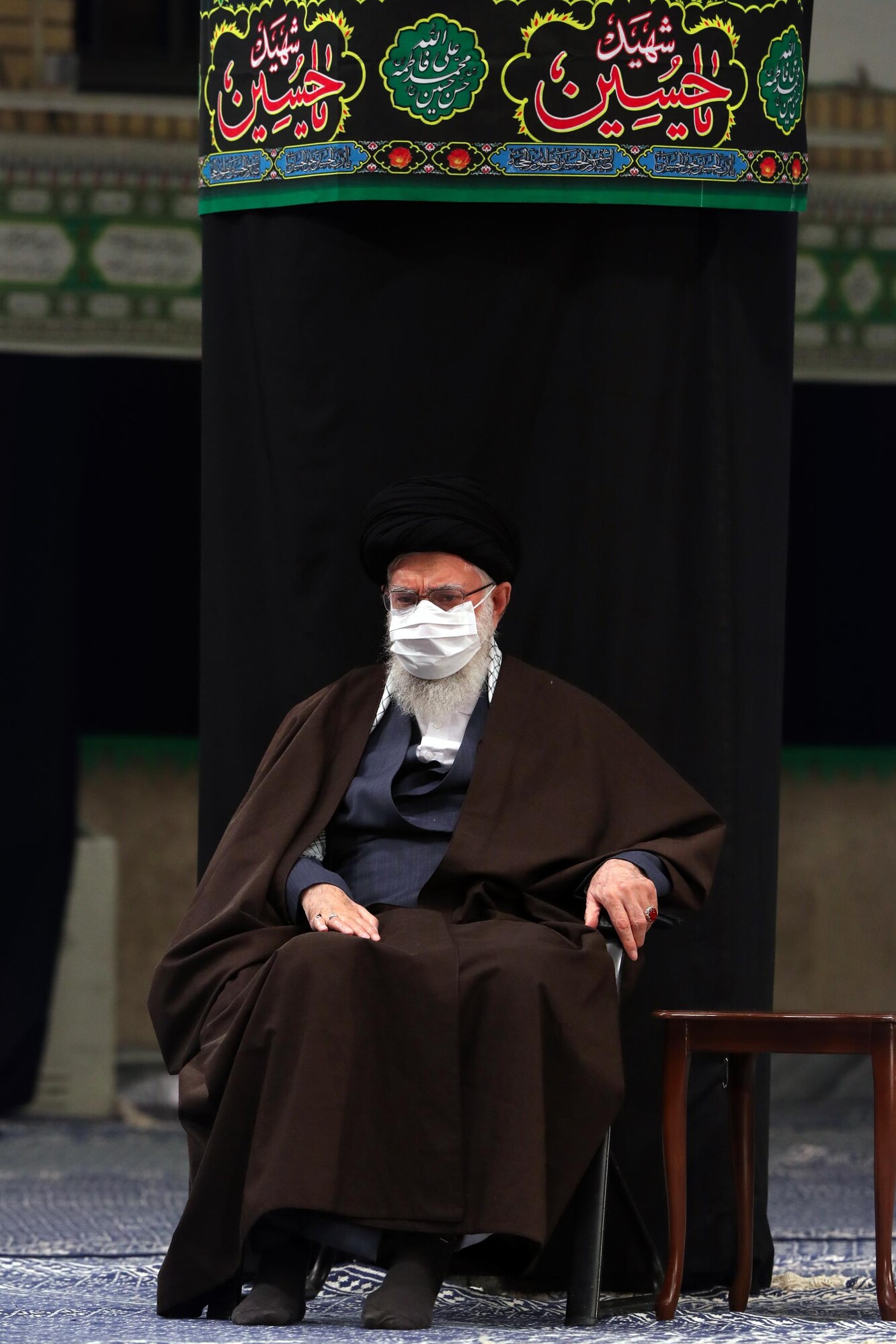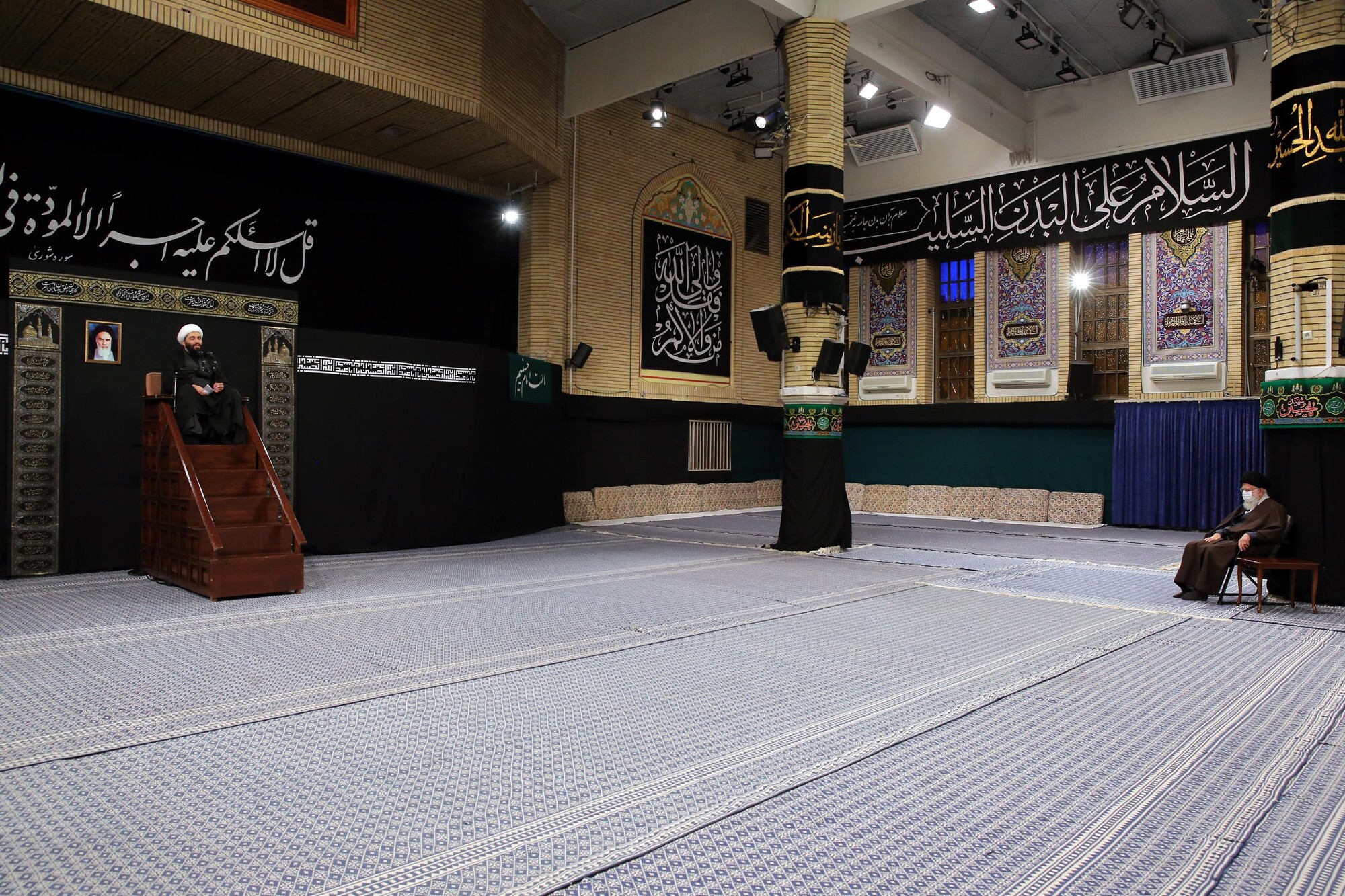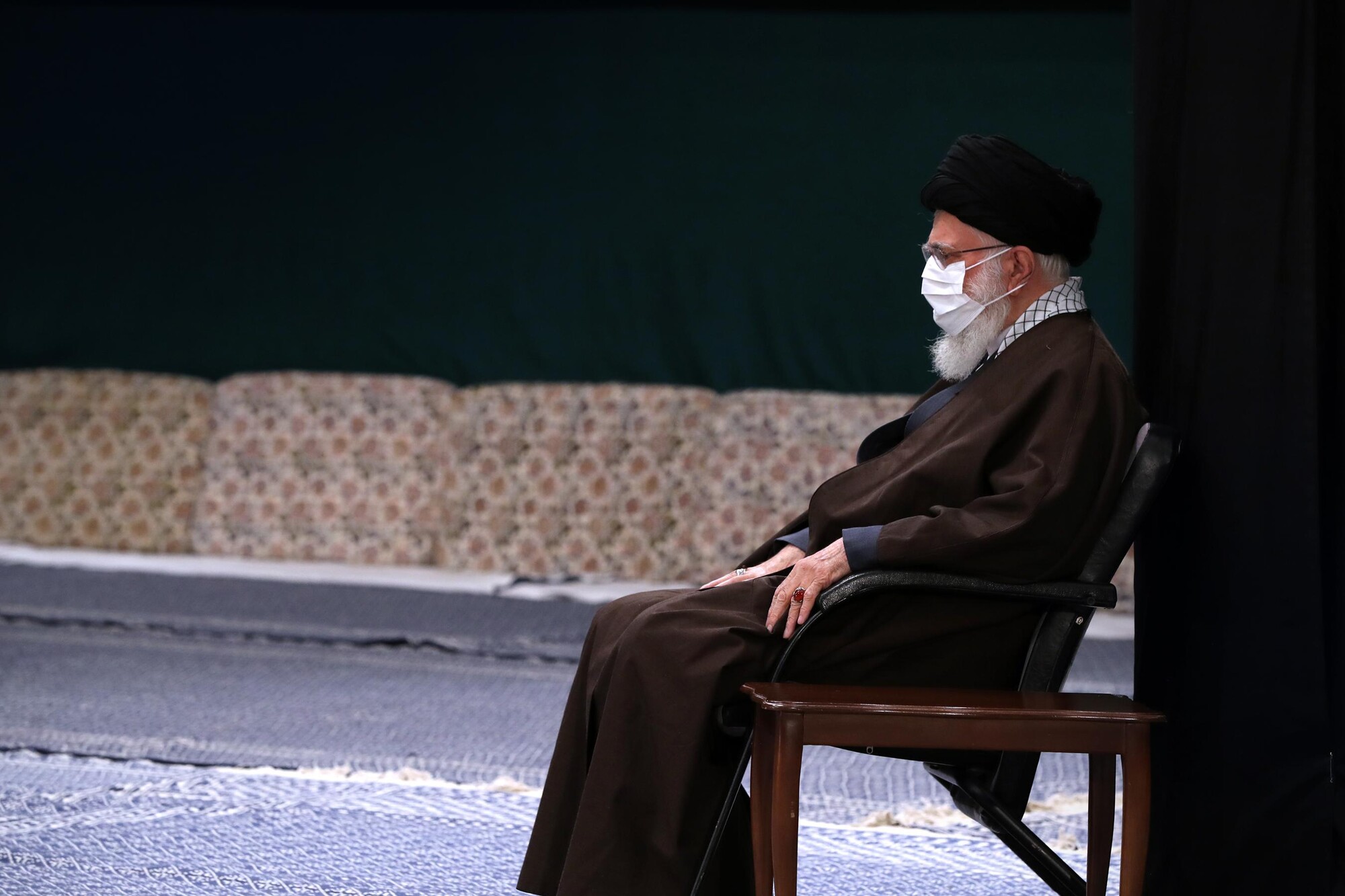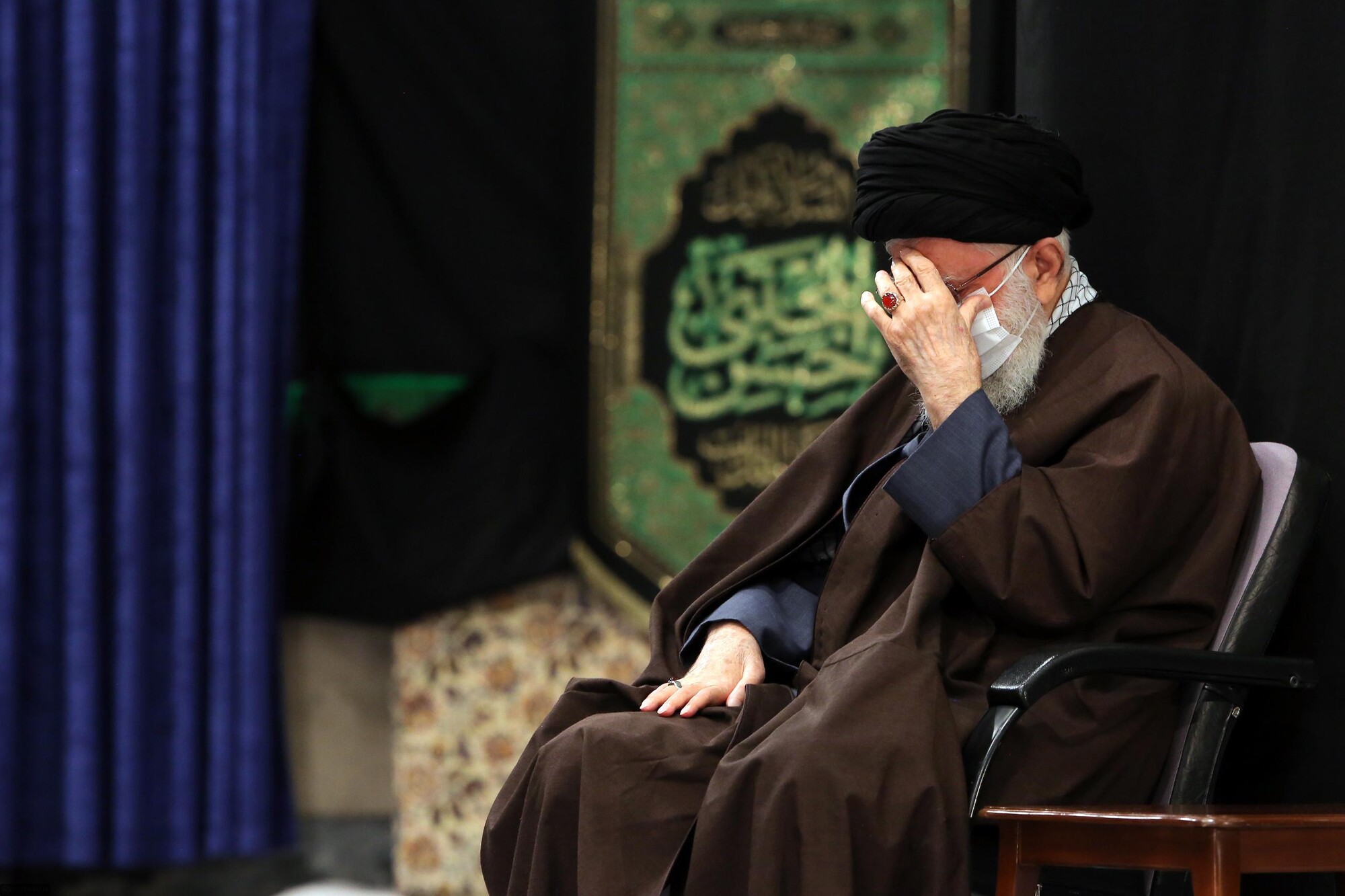 Le Guide suprême de la Révolution islamique, l'Ayatollah Sayed Ali Khamenei, a assisté à une cérémonie de deuil dans la Hussainiyeh Imam Khomeiny, organisée à l’occasion de l’anniversaire du décès du Saint Prophète (SAWA) et celui du martyre de l'Imam Hassan (as), 16 octobre 2020. En raison de la pandémie de coronavirus, cette cérémonie n’a pas été organisée publiquement.