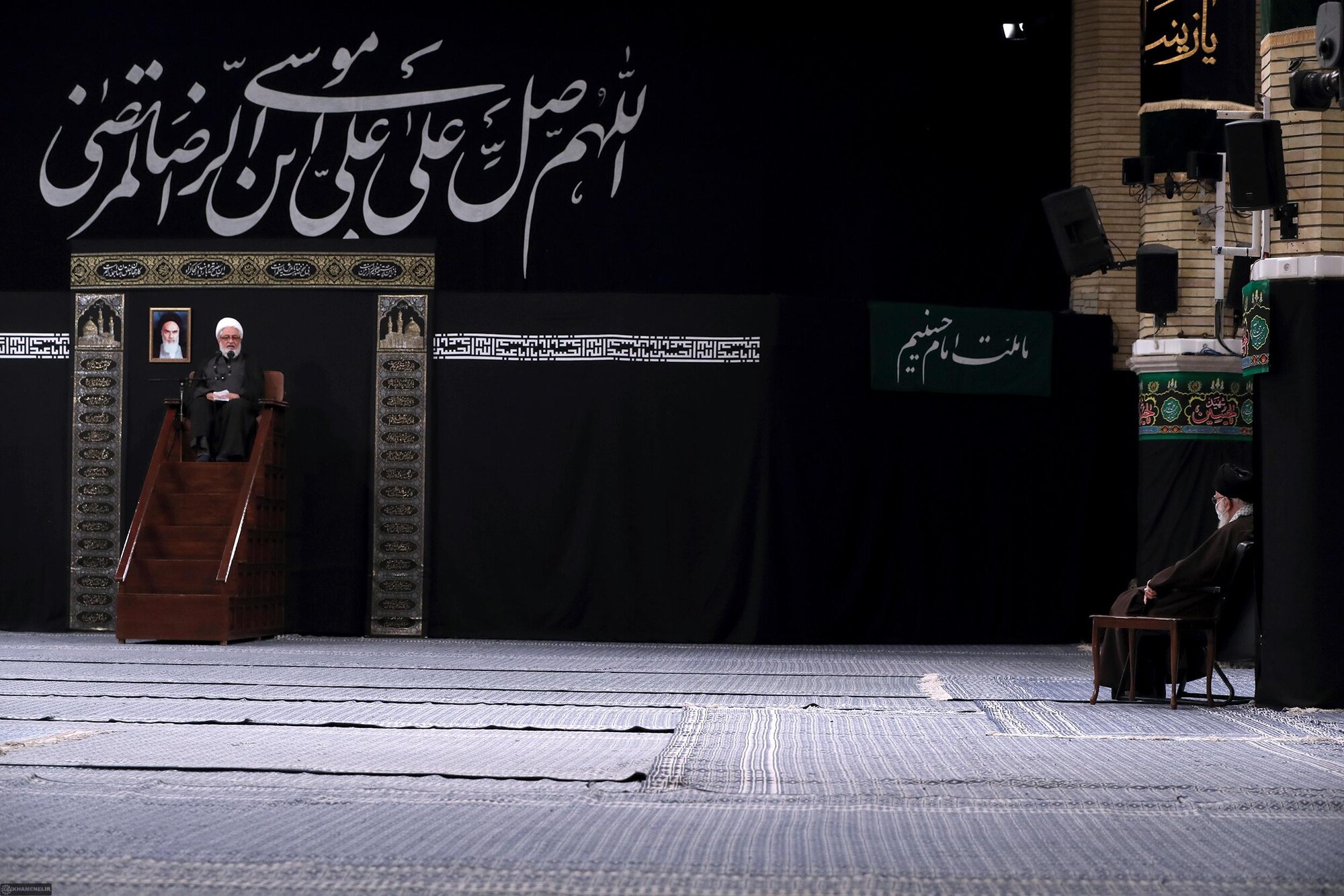 Le Guide suprême de la Révolution islamique, l'Ayatollah Sayed Ali Khamenei, a assisté à une cérémonie de deuil dans la Hussainiyeh Imam Khomeiny, organisée à l’occasion de l’anniversaire du martyre de l'Imam Reza (as), 17 octobre 2020. En raison de la pandémie de coronavirus, cette cérémonie n’a pas été organisée publiquement.