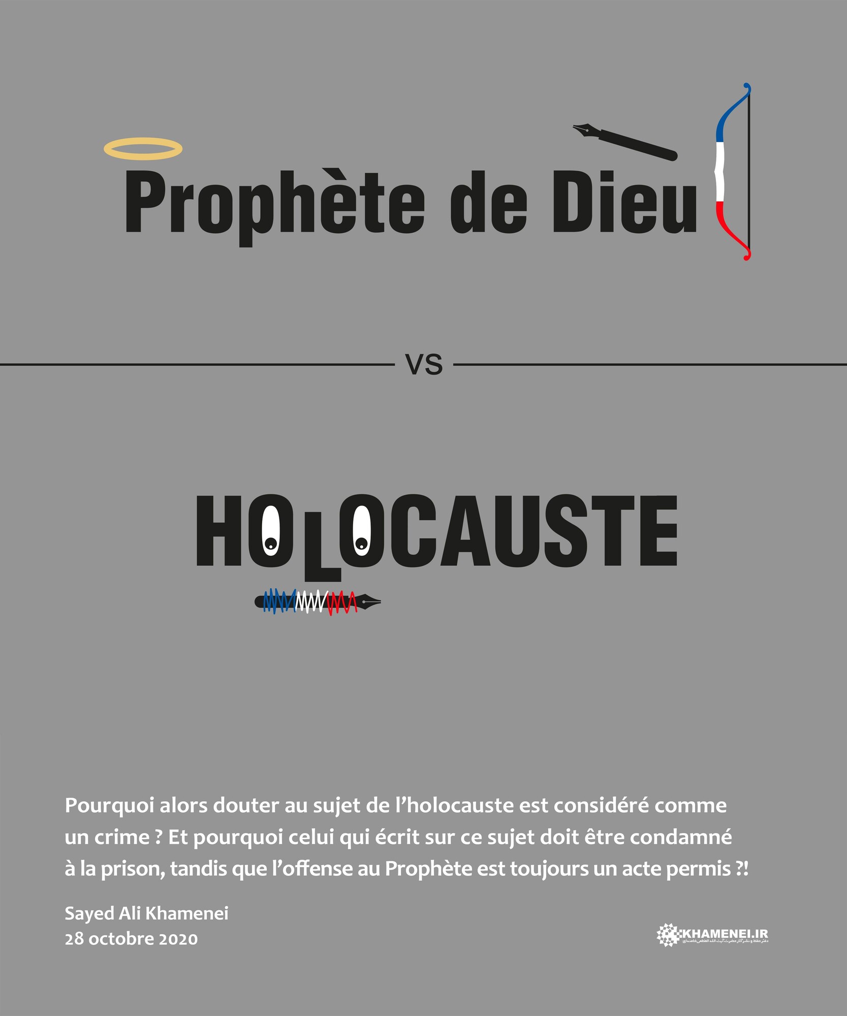 Pourquoi alors douter au sujet de l’holocauste est considéré comme un crime ? Et pourquoi celui qui écrit sur ce sujet doit être condamné à la prison, tandis que l’offense au Prophète est toujours un acte permis ?! Sayed Ali Khamenei 28 octobre 2020