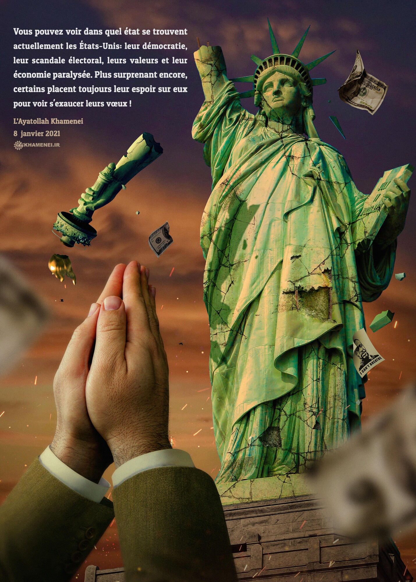 Vous pouvez voir dans quel état se trouvent actuellement les États-Unis: leur démocratie, leur scandale électoral, leurs valeurs et leur économie paralysée. Plus surprenant encore, certains placent toujours leur espoir sur eux pour voir s'exaucer leurs vœux ! L’Ayatollah Khamenei 8 janvier 2021