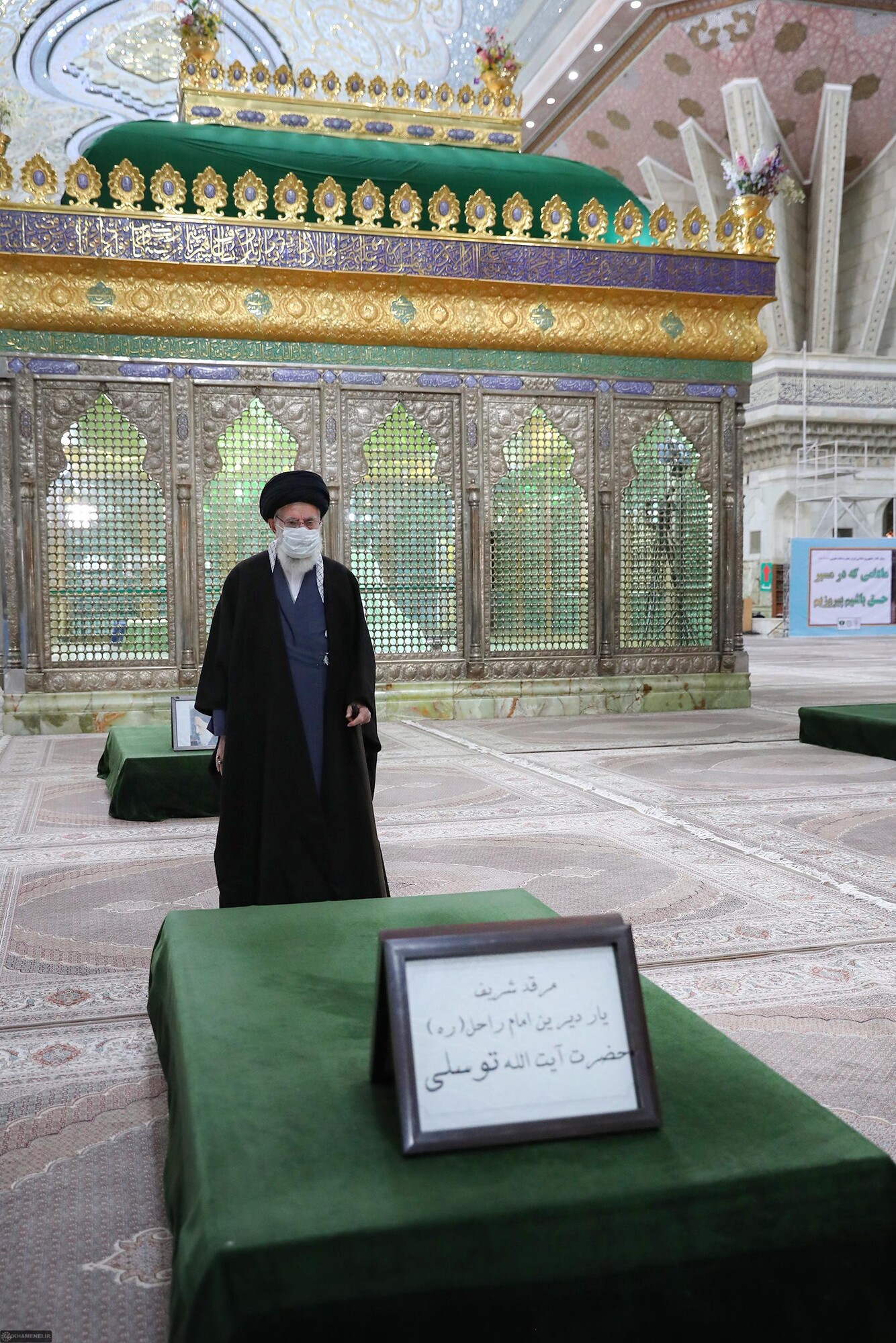 A l’arrivée de la Décade du Fajr et au seuil du 42e anniversaire de la glorieuse victoire de la Révolution islamique, l'Ayatollah Khamenei, Guide suprême de la Révolution islamique, a visité le mausolée de l'Imam Khomeiny (r.a.) et a rendu hommage à la mémoire du grand et noble Fondateur de la Révolution islamique en accomplissant des prières et en récitant le Coran. Son Eminence a également rendu visite aux tombes des nobles martyrs dont Beheshti, Rajaï et Bahonar ainsi que les martyrs de l'Attentat de Hafte Tir 1360 (28 juin 1981), demandant à Allah le Très-Haut d'élever leur rang dans l’au-delà. Le Guide suprême de la Révolution islamique a ensuite visité Golzar-e Shohada [le carré des martyrs au cimtière Behesht-Zahra] pour rendre hommage aux âmes pures des défenseurs de l'Islam et de l'Iran.