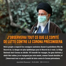 Notre peuple a respecté les consignes sanitaires durant la précédente fête du Nouvel An. Le danger est plus épidémique pour le Nouvel An à venir. Le Siège National Anti-Corona en décide. S’il interdit les voyages, les gens doivent y obéir! Moi-même, je ne voyagerai pas cette année, comme l'année dernière, et j'observerai tout ce que le comité de lutte contre le Corona préconisera. L’Imam Khamenei, 5 mars 2021
