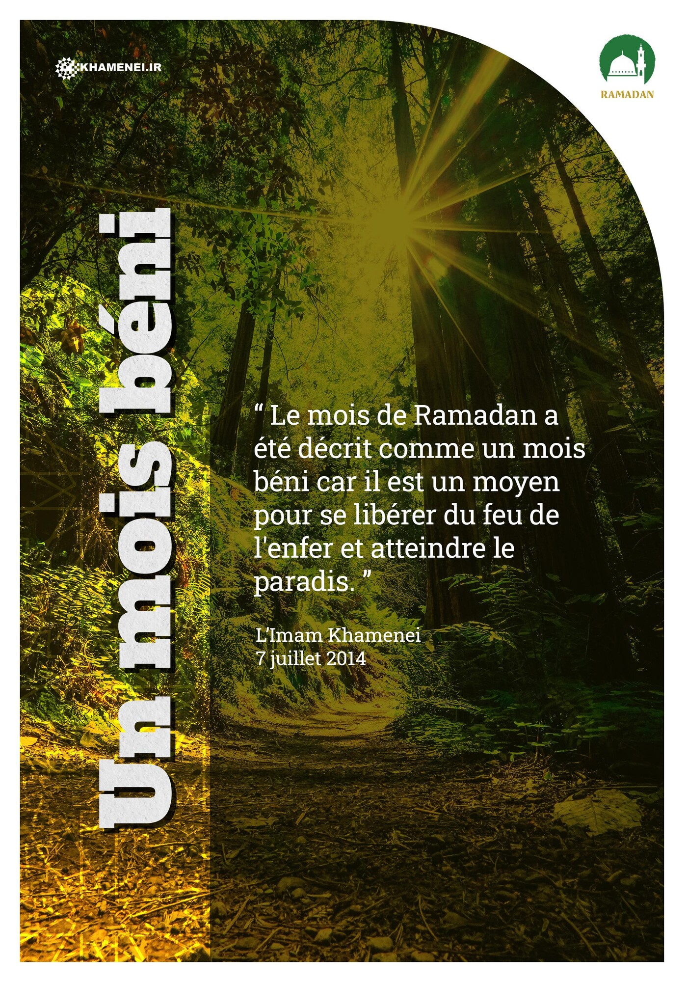 Le mois de Ramadan a été décrit comme un mois béni car il est un moyen pour se libérer du feu de l'enfer et atteindre le paradis. Imam Khamenei, 7 juillet 2014