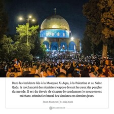 Dans les incidents liés à la Mosquée Al-Aqsa, à la Palestine et au Saint Quds, la méchanceté des sionistes s’expose devant les yeux des peuples du monde. Il est du devoir de chacun de condamner le mouvement méchant, criminel et brutal des sionistes ces derniers jours. Imam Khamenei, 11 mai 2021