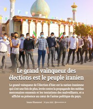 Aucune plainte sur les difficultés pécuniaires, aucune menace causée par le Covid-19, aucune propagande pour décourager le peuple ni aucune des quelques irrégularités dans le processus de vote dans certaines heures du jour des élections, n'ont pu vaincre la volonté du peuple iranien. Imam Khamenei, 19 juin 2021