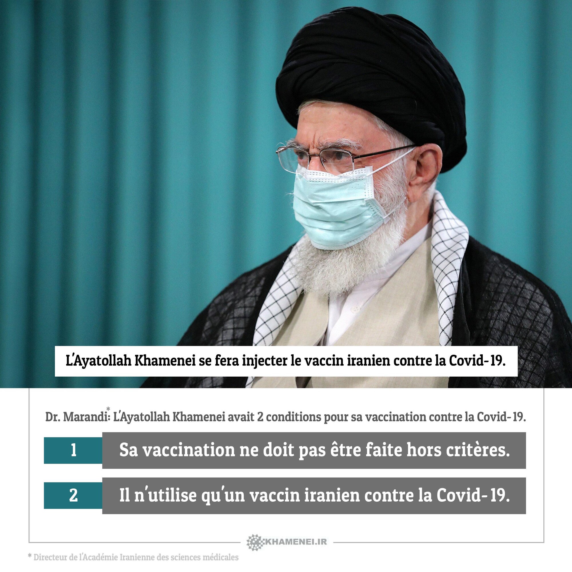 Dr. Marandi* : L'Ayatollah Khamenei avait 2 conditions pour sa vaccination contre la Covid-19. 1. Sa vaccination ne doit pas être faite hors critères. 2. Il n'utilise qu'un vaccin iranien contre la Covid-19. *Directeur de l'Académie Iranienne des sciences médicales