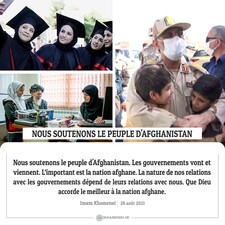 Nous soutenons le peuple d'Afghanistan. Les gouvernements vont et viennent. L’important est la nation afghane. La nature de nos relations avec les gouvernements dépend de leurs relations avec nous. Que Dieu accorde le meilleur à la nation afghane. Imam Khamenei, 28 août 2021
