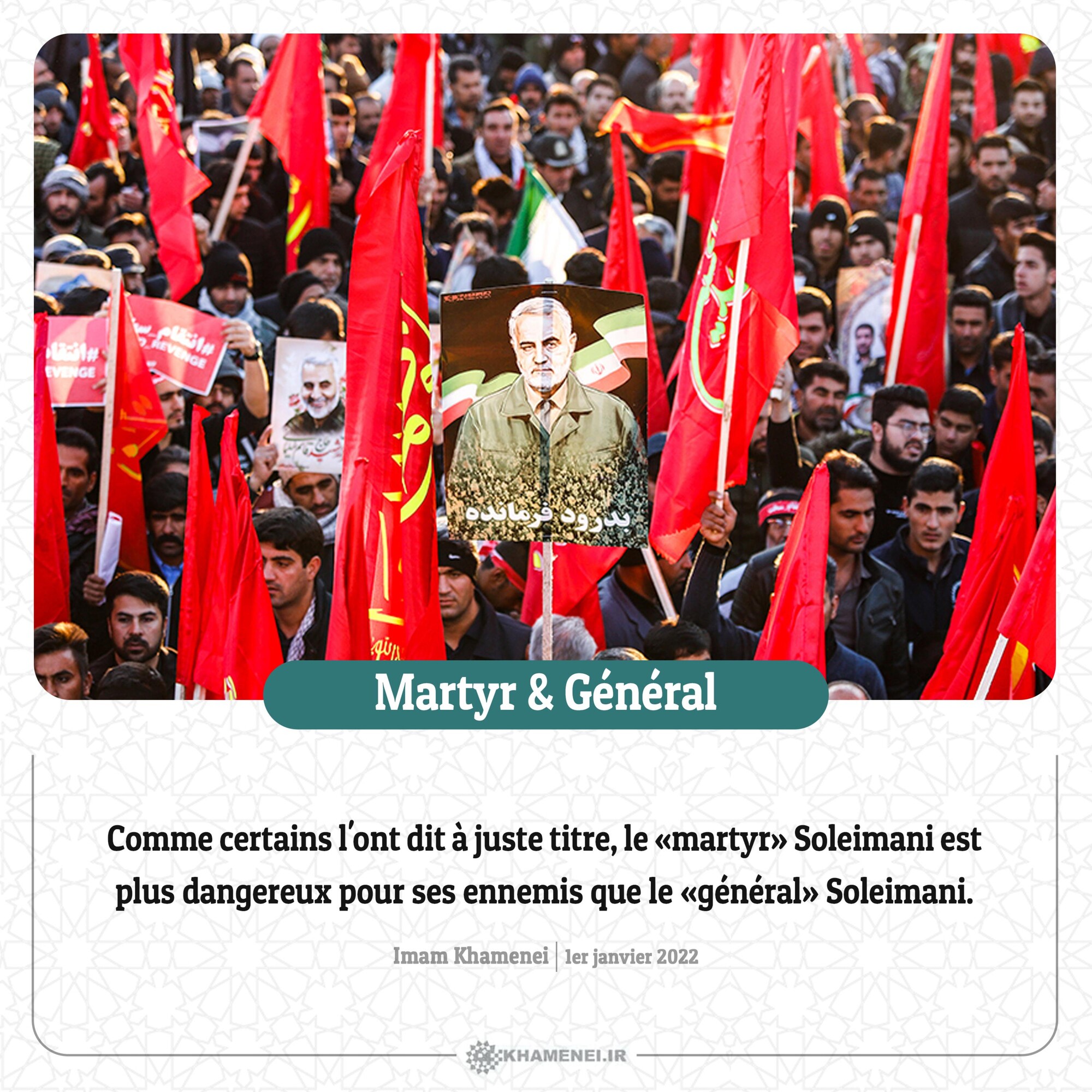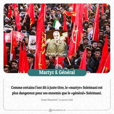 Comme certains l'ont dit à juste titre, le « martyr » Soleimani est plus dangereux pour ses ennemis que le « général » Soleimani. Imam Khamenei, 1er janvier 2022