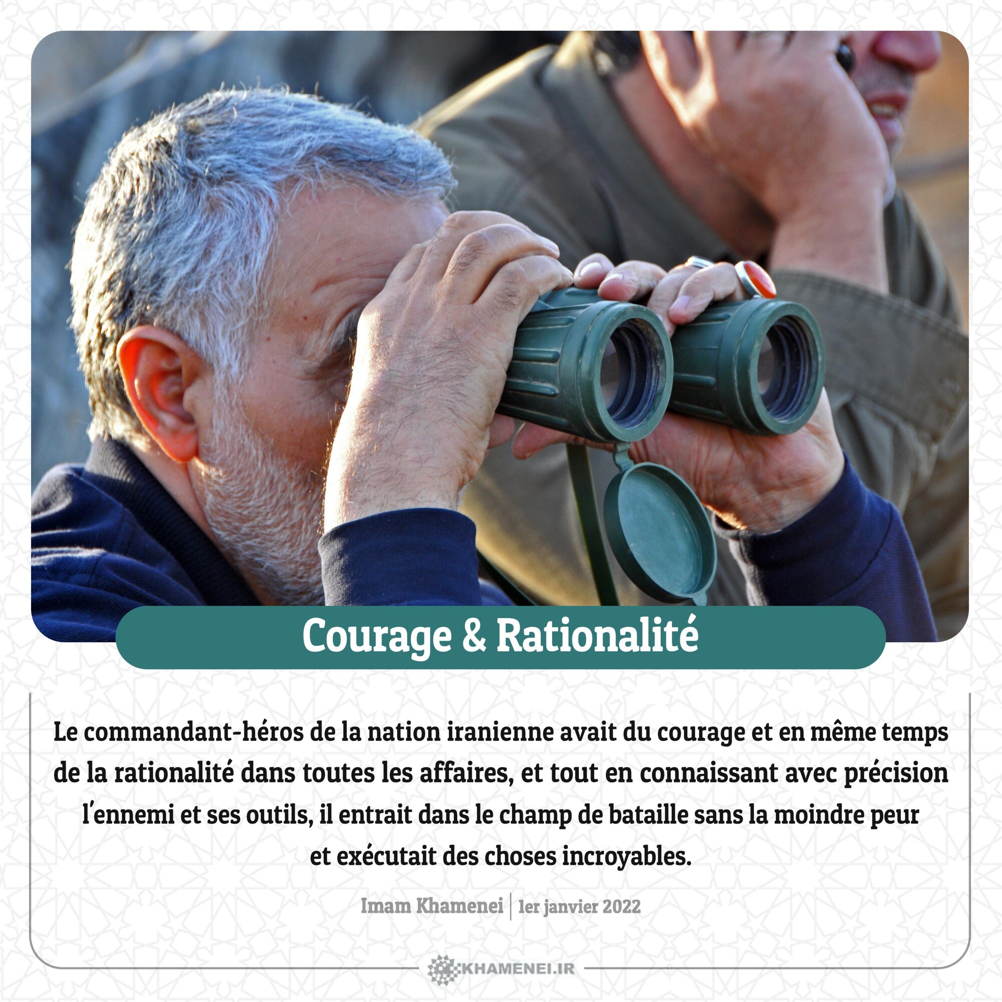 Le commandant-héros de la nation iranienne avait du courage et en même temps de la rationalité dans toutes les affaires, et tout en connaissant avec précision l'ennemi et ses outils, il entrait dans le champ de bataille sans la moindre peur et exécutait des choses incroyables. Imam Khamenei, 1er janvier 2022