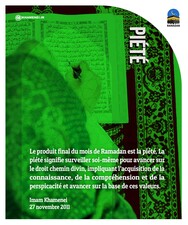 Le produit final du mois de Ramadan est la piété. La piété signifie surveiller soi-même pour avancer sur le droit chemin divin, impliquant l’acquisition de la connaissance, de la compréhension et de la perspicacité et avancer sur la base de ces valeurs. 27 novembre 2011