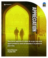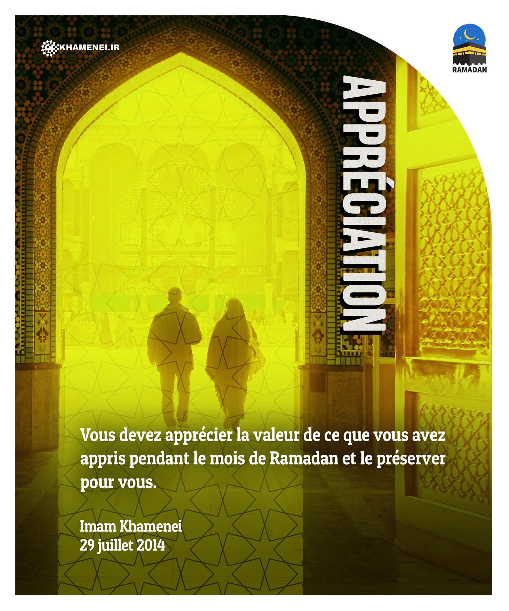 Vous devez apprécier la valeur de ce que vous avez appris pendant le mois de Ramadan et le préserver pour vous. Imam Khamenei, 29 juillet 2014