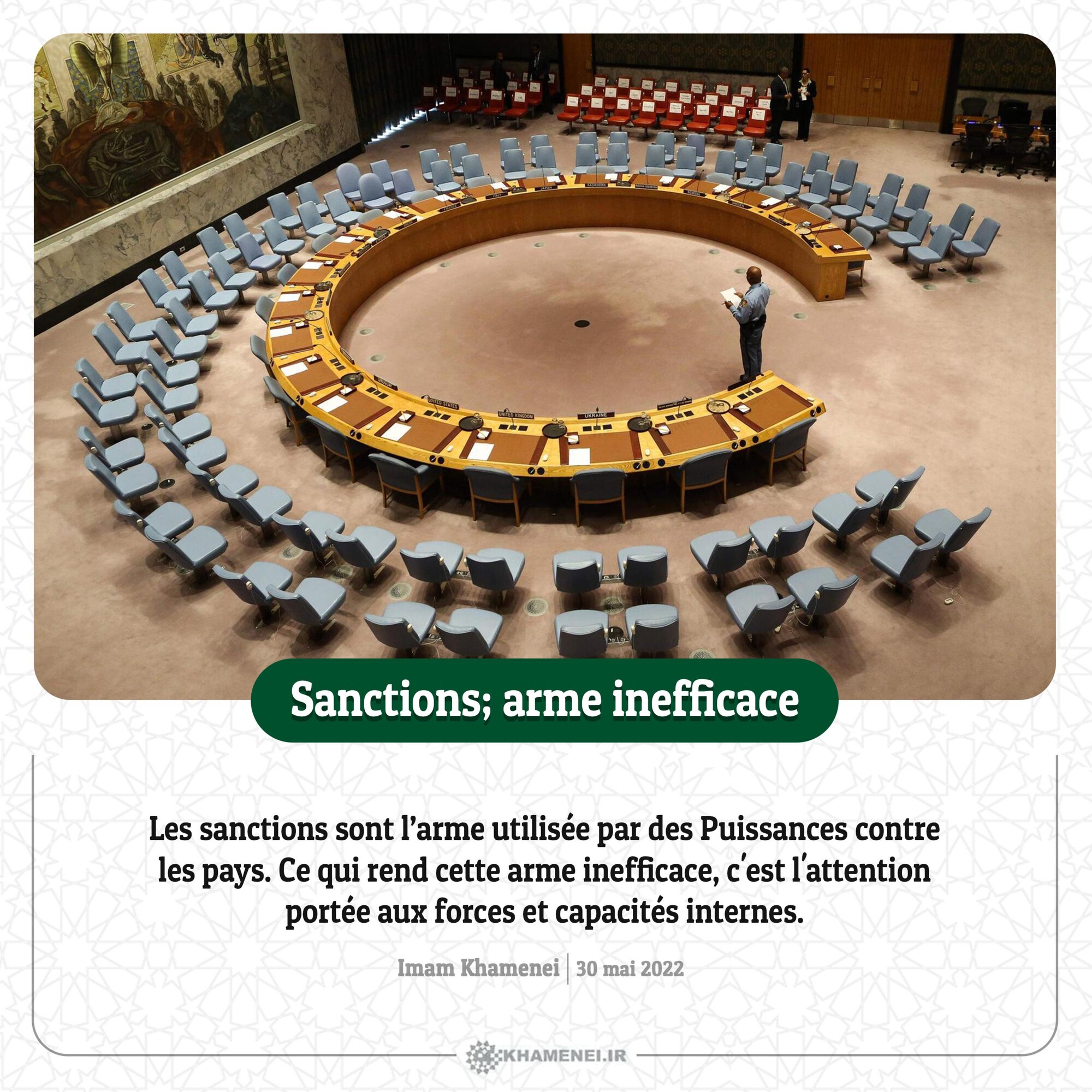Les sanctions sont l’arme utilisée par des Puissances contre les pays. Ce qui rend cette arme inefficace, c'est l'attention portée aux forces et capacités internes. Imam Khamenei, 30 mai 2022
