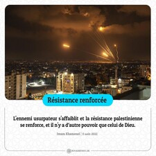 L'ennemi usurpateur s'affaiblit et la résistance palestinienne se renforce, et il n'y a d’autre pouvoir que celui de Dieu. Imam Khamenei, 11 août 2022