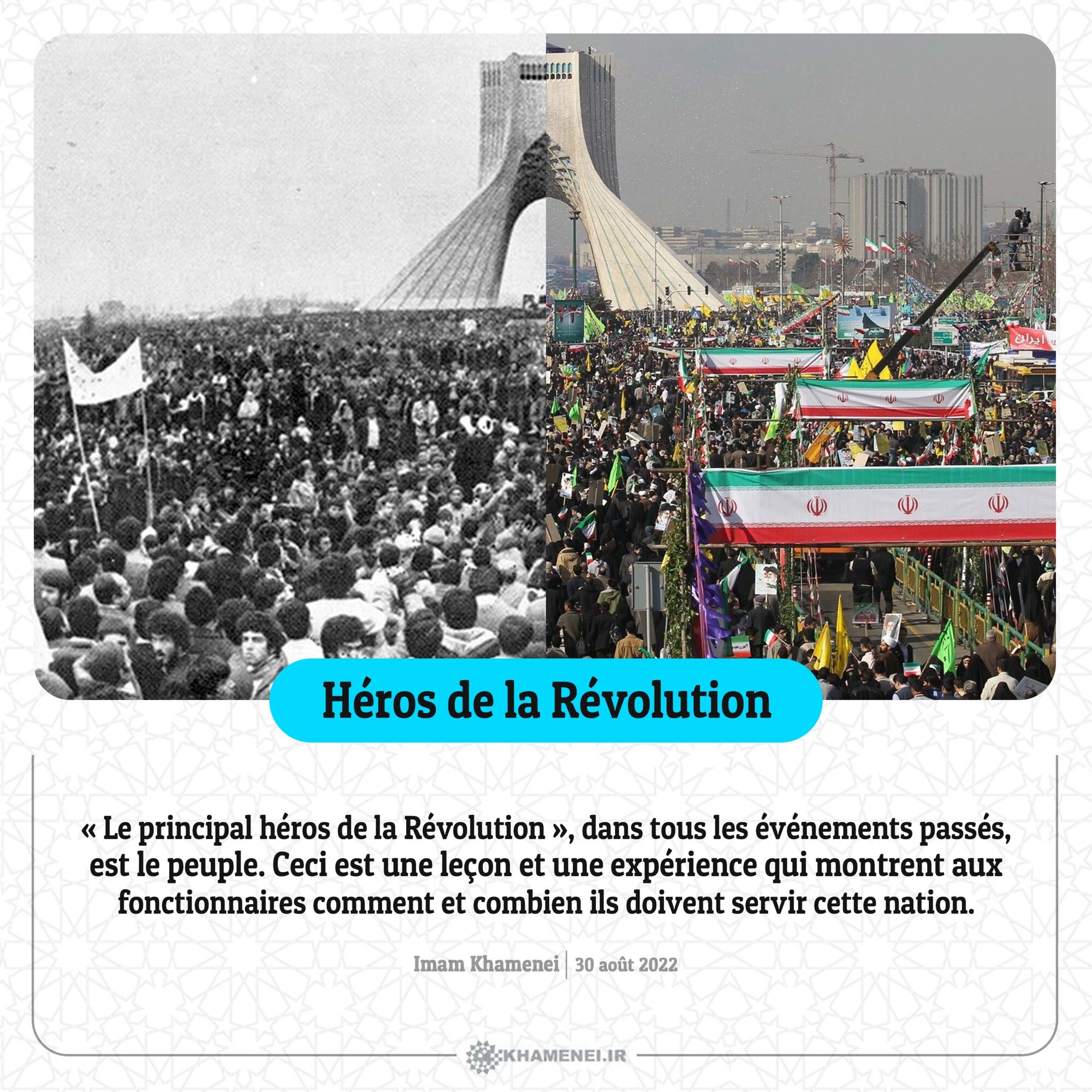 « Le principal héros de la Révolution », dans tous les événements passés, est le peuple. Ceci est une leçon et une expérience qui montrent aux fonctionnaires comment et combien ils doivent servir cette nation. Imam Khamenei, 30 août 2022