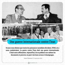 Un jour nous disions que toutes les puissances mondiales (Occident, OTAN, etc.) nous combattaient. La guerre contre l'Iran était une guerre internationale. C'était notre affirmation. Aujourd'hui, ils en publient eux-mêmes les documents et preuves; on peut voir leurs aveux et témoignages. Imam Khamenei, 21 septembre 2022