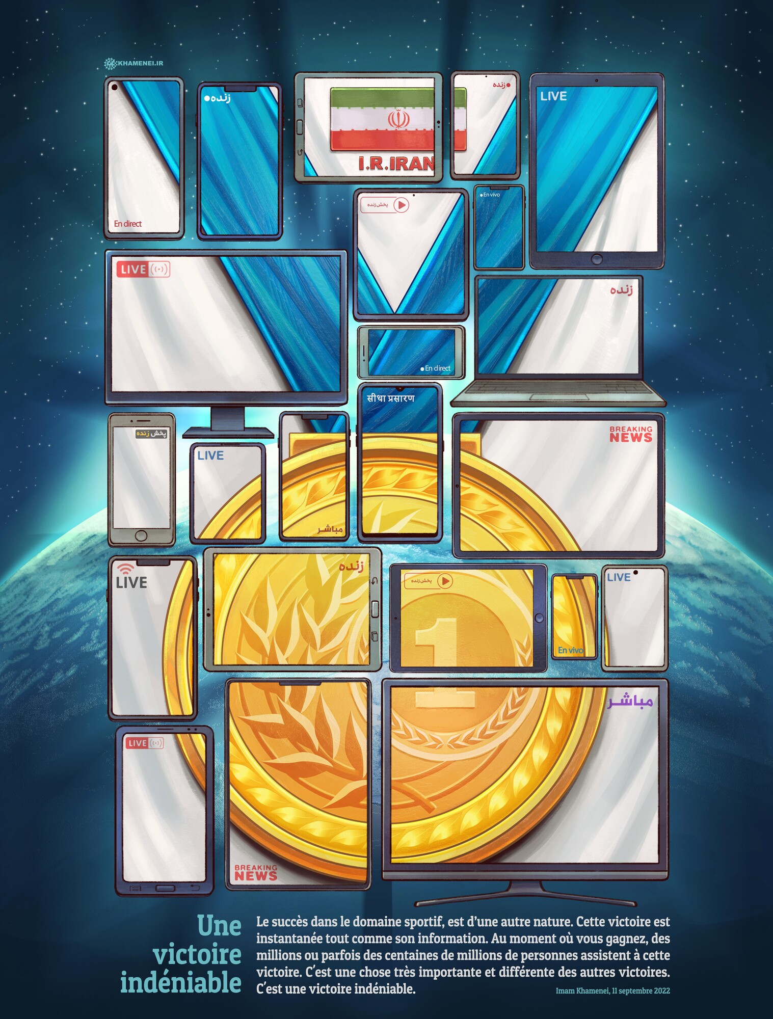 Le succès dans le domaine sportif, est d’une autre nature. Cette victoire est instantanée tout comme son information. Au moment où vous gagnez, des millions ou parfois des centaines de millions de personnes assistent à cette victoire. C'est une chose très importante et différente des autres victoires. C'est une victoire indéniable. Imam Khamenei, 11 septembre 2022