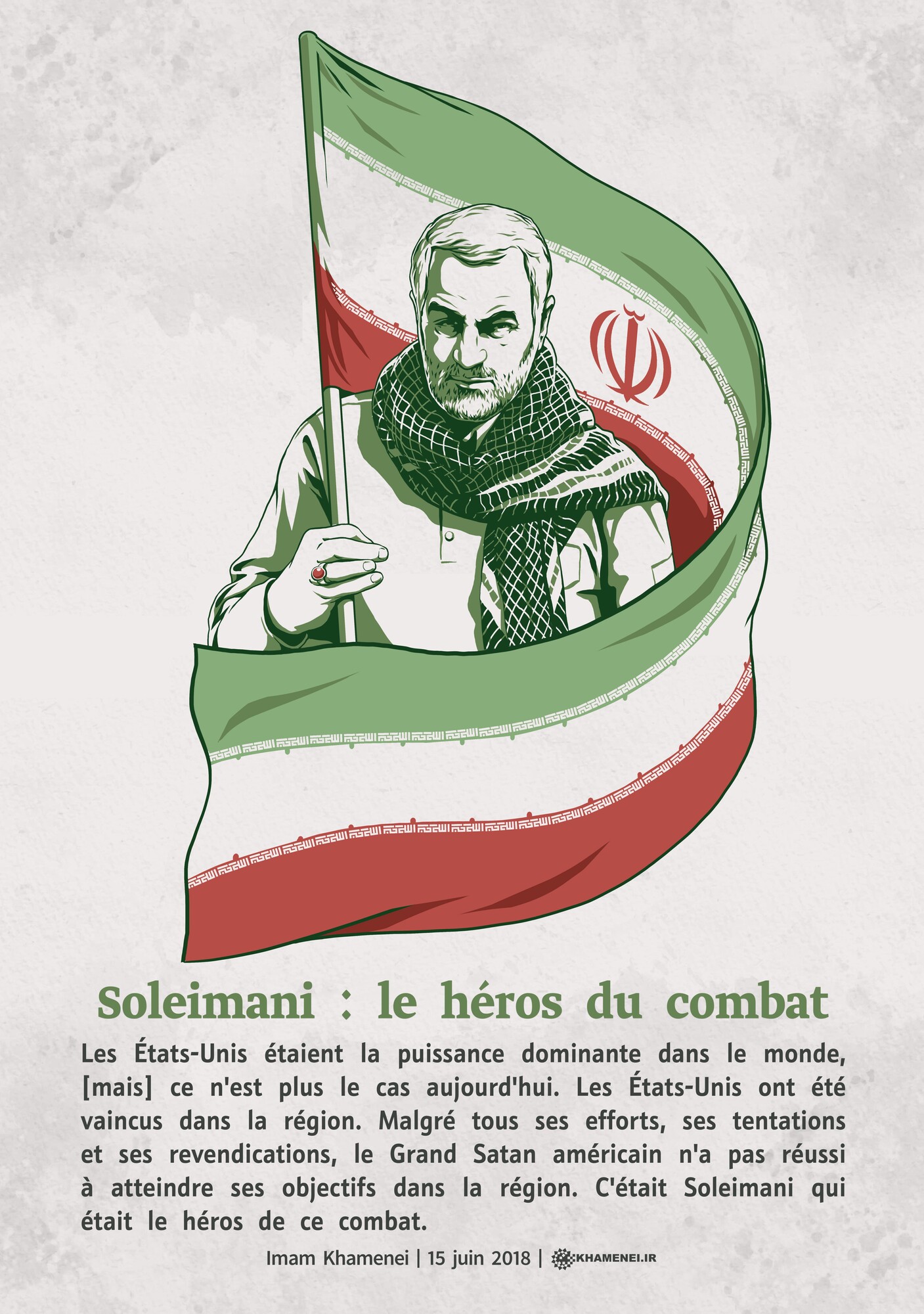 Les États-Unis étaient la puissance dominante dans le monde, [mais] ce n'est plus le cas aujourd'hui. Les États-Unis ont été vaincus dans la région. Malgré tous ses efforts, ses tentations et ses revendications, le Grand Satan américain n'a pas réussi à atteindre ses objectifs dans la région. C'était Soleimani qui était le héros de ce combat. Imam Khamenei, 15 juin 2018
