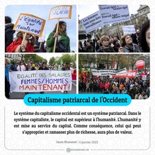 Le système du capitalisme occidental est un système patriarcal. Dans le système capitaliste, le capital est supérieur à l'humanité. L'humanité y est mise au service du capital. Comme conséquence, celui qui peut s’approprier et ramasser plus de richesse, aura plus de valeur. Imam Khamenei, 4 janvier 2023