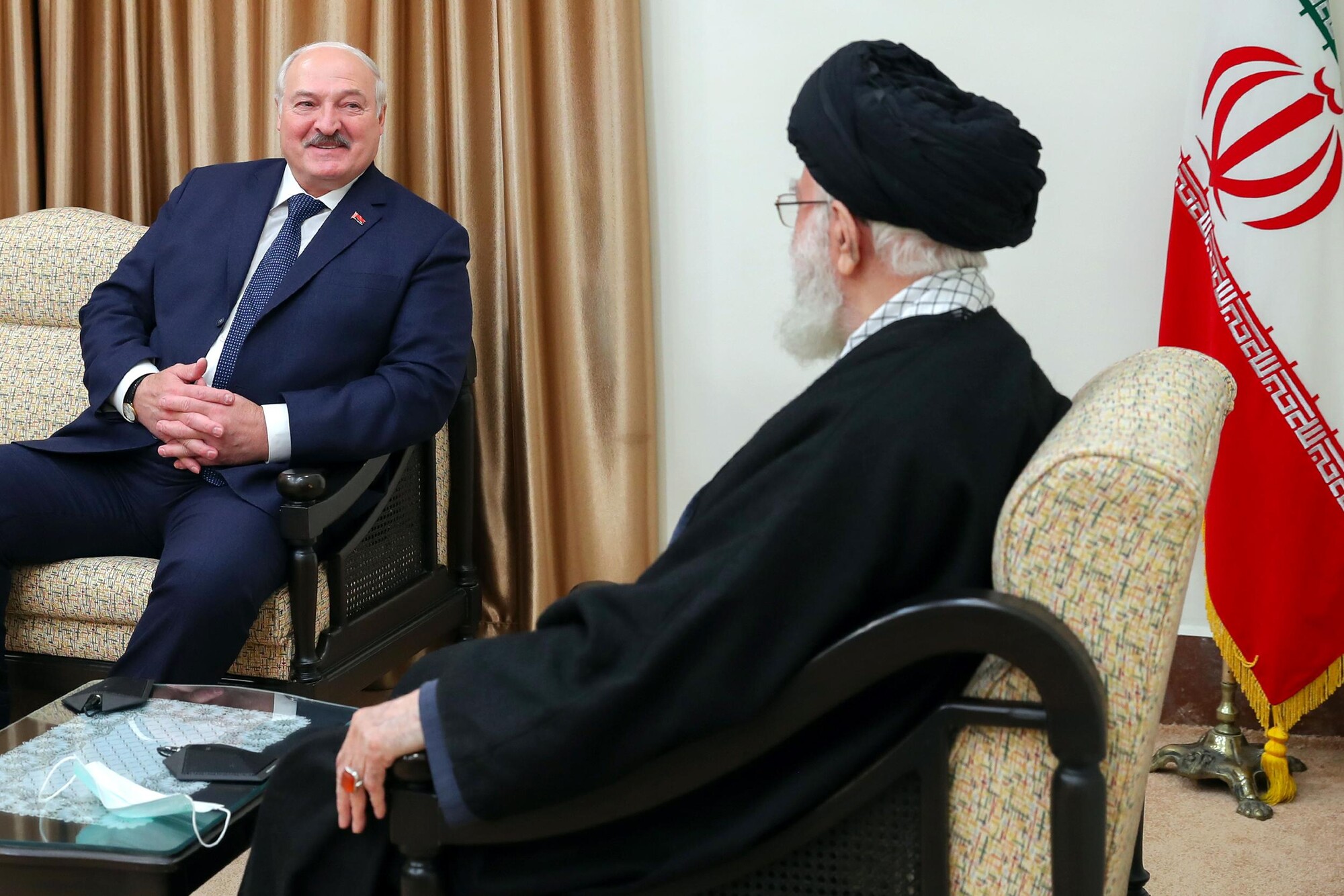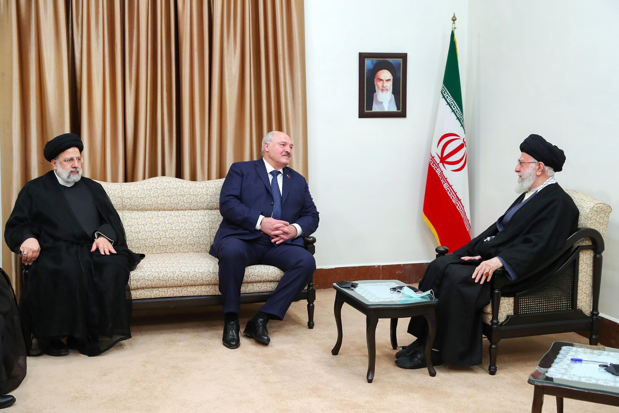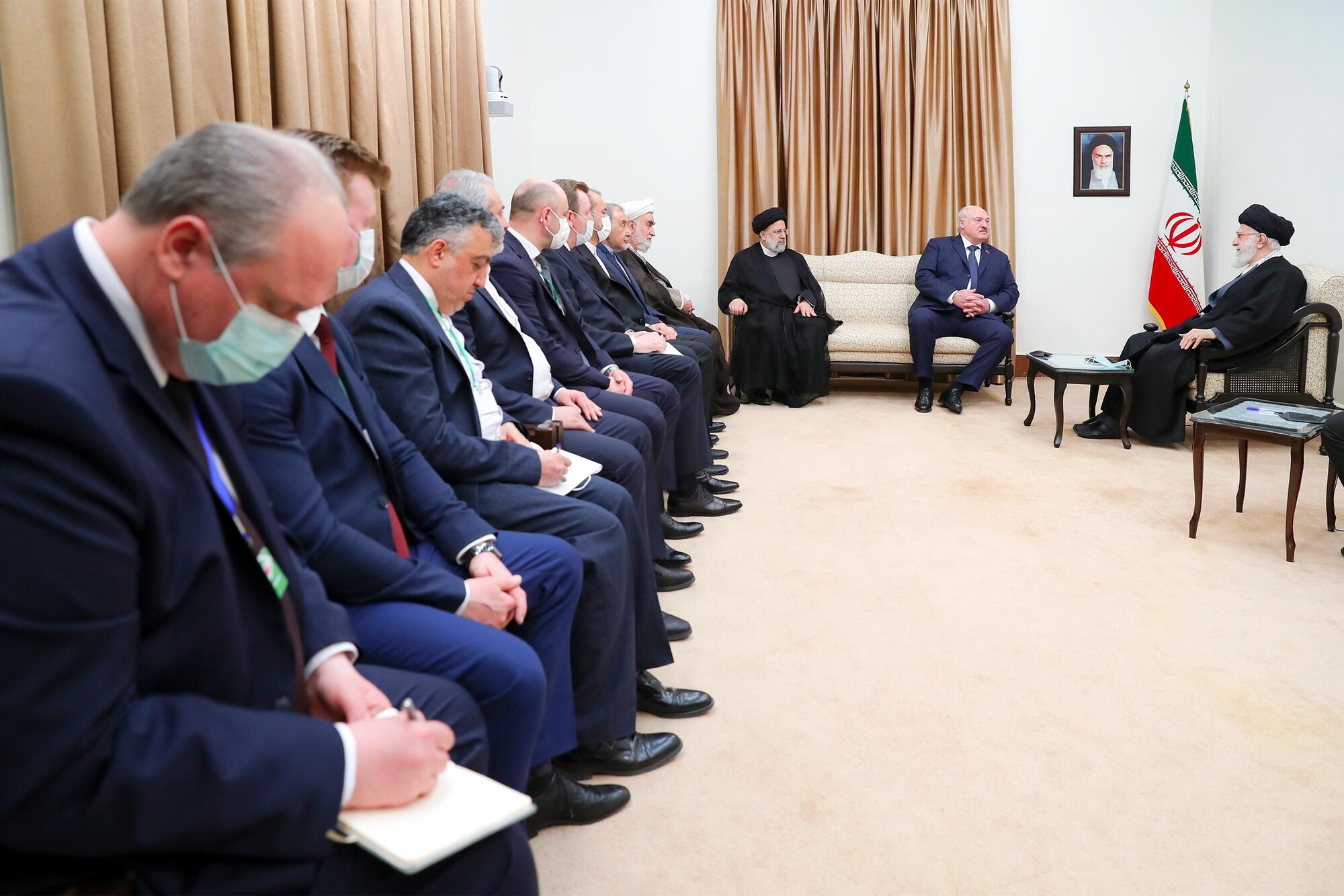Photo : Rencontre du président biélorusse, Alexandre Loukachenko, et la délégation l'accompagnant à Téhéran avec le Guide suprême de la Révolution islamique