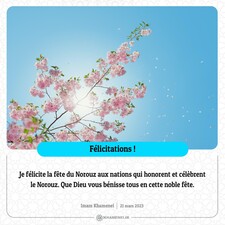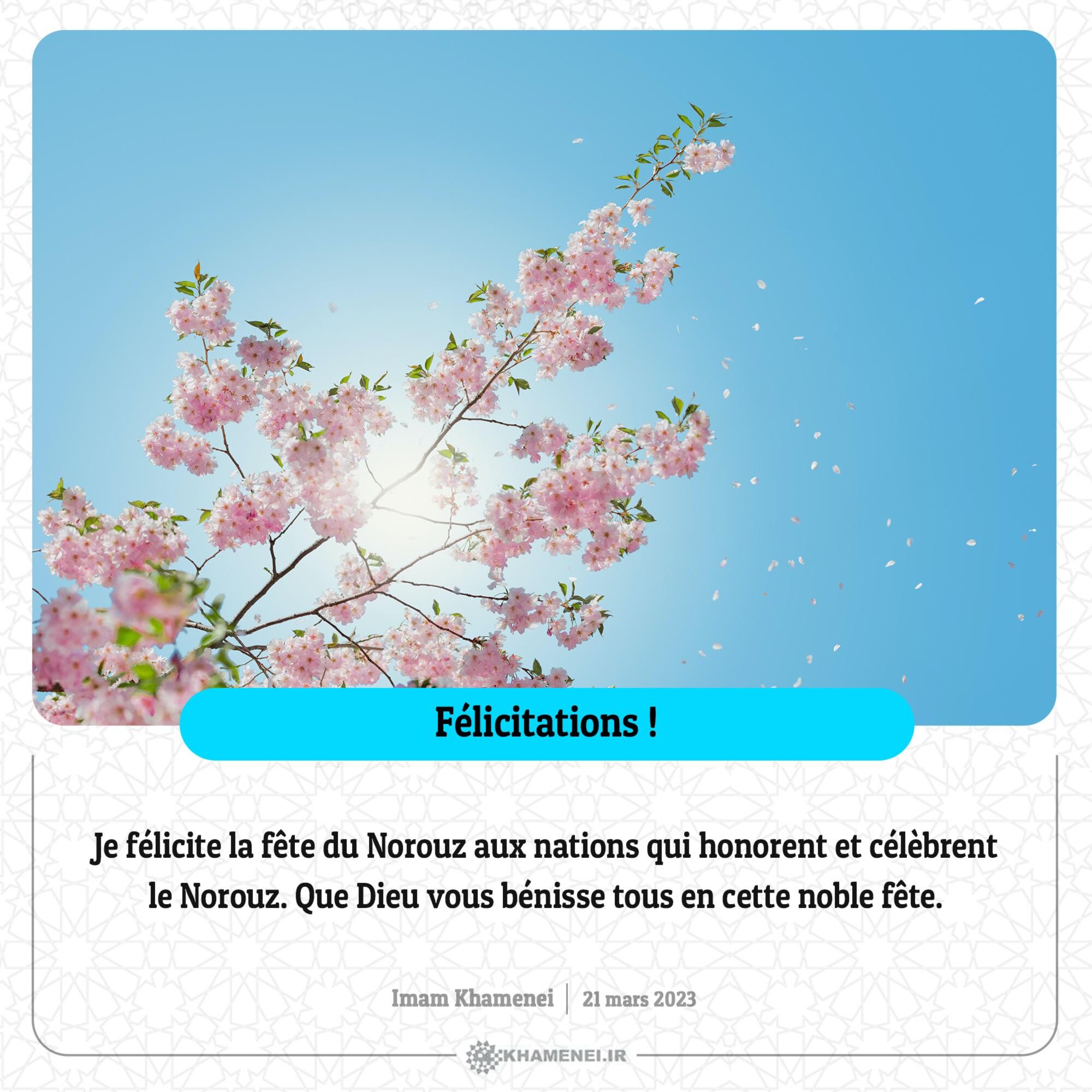 Je félicite la fête du Norouz aux nations qui honorent et célèbrent le Norouz. Que Dieu vous bénisse tous en cette noble fête. Imam Khamenei, 21 mars 2023