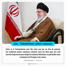 L'Iran et le Turkménistan sont liés entre eux par un lien de parenté. Les nombreux points communs culturels entre les deux pays ont créé une base importante pour élargir les relations bilatérales, en particulier dans le domaine de l'énergie et des routes.  Imam Khamenei, 31 mai 2023
