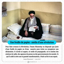 Pour faire avancer la Révolution, l’Imam Khomeiny ne disposait que juste d’une feuille de papier ou d’une cassette pour écrire ou enregistrer une déclaration. Il n'avait ni argent, ni outils de propagande, ni le soutien des stations de radio, des agences de presse ou des gouvernements du monde. Ce qui l'a aidé à créer une si grande transformation, c'était sa foi et son espoir. Imam Khamenei, 4 juin 2023