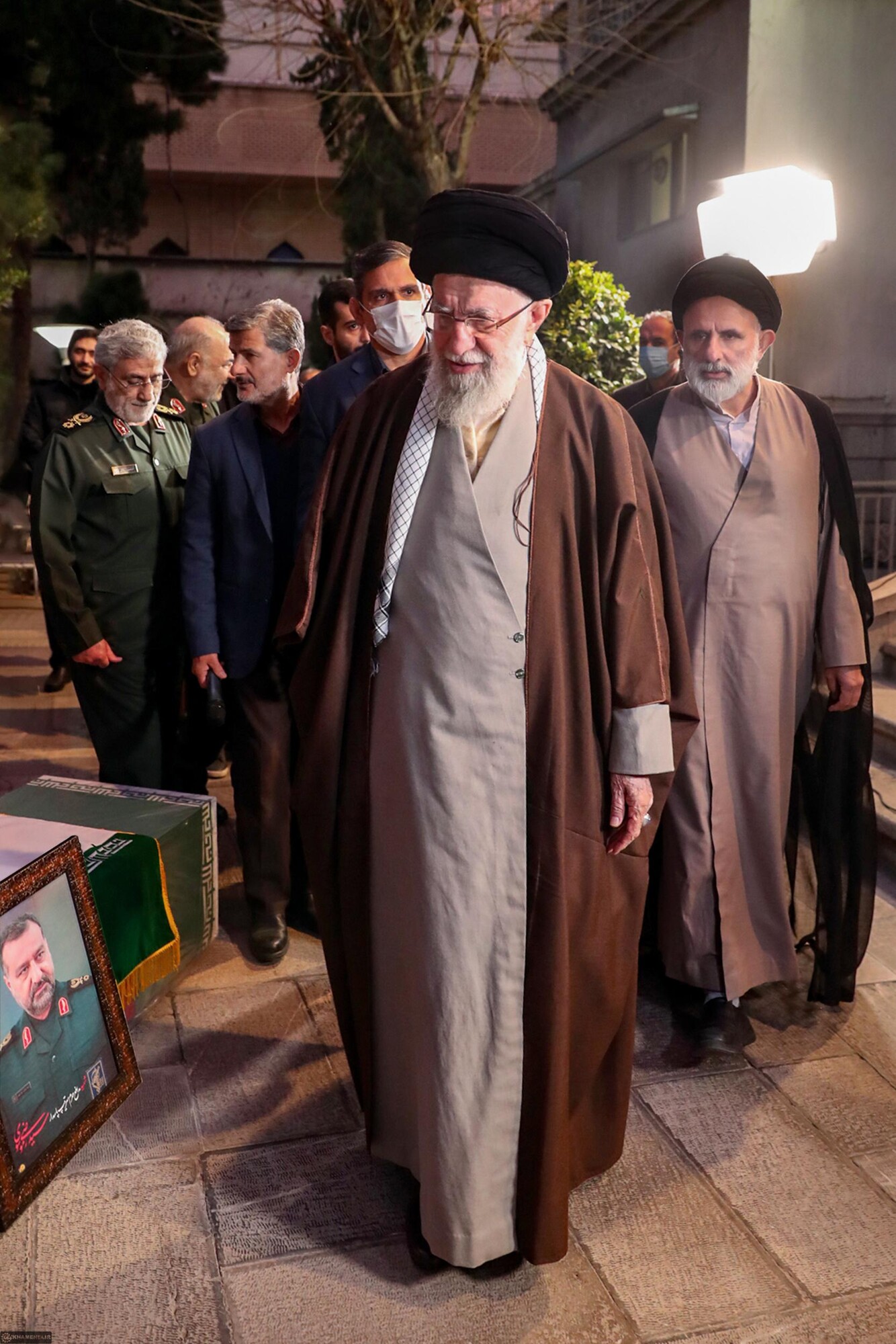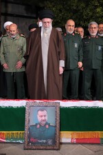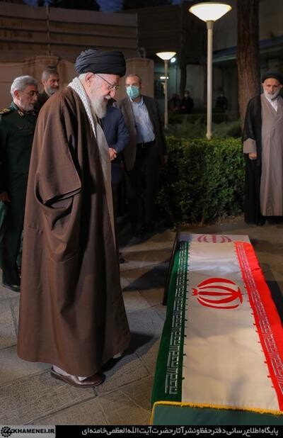 L'Ayatollah Khamenei, Guide suprême de la Révolution islamique, a dirigé la prière mortuaire sur le corps du martyr Sayed Razi Mousavi et récité la Fatiha ce matin (28 décembre 2023).