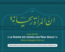 Hadith installé dans la salle de rencontre avec des mères et femmes iraniennes, 27 décembre 2023 [Imam Ali (AS), Nahj-ul-Balaghah, lettre 31]