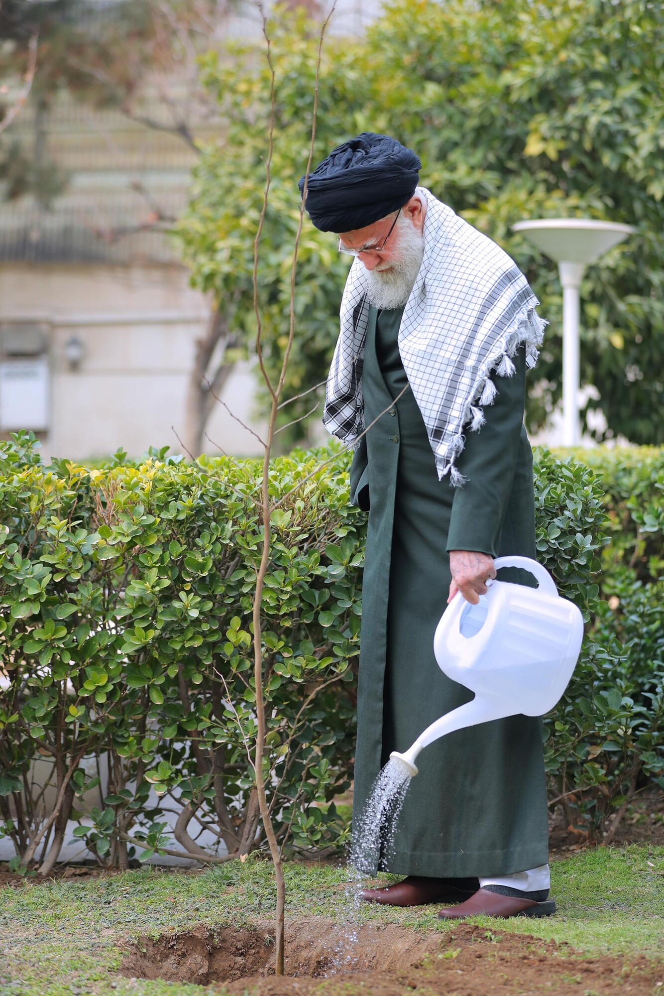 L'imam Khamenei, Guide suprême de la Révolution islamique, a planté trois jeunes arbres aujourd'hui, le 5 mars 2024, à l'occasion de la Semaine nationale des ressources naturelles et de la Journée nationale de la plantation d'arbres.