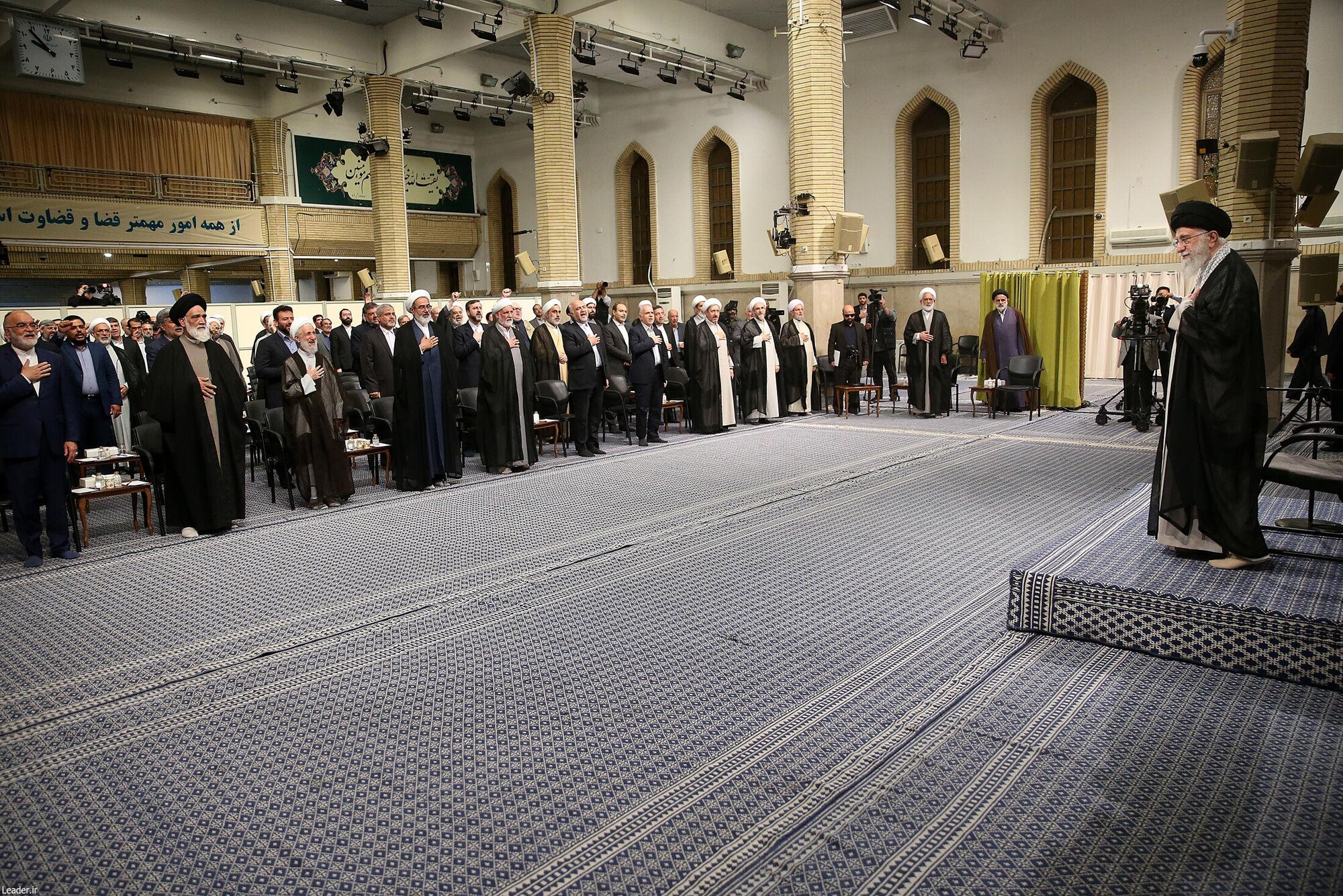 À l'occasion de la Semaine du Pouvoir Judiciaire et de l'assassinat, le 28 juin 1981, du chef du Pouvoir judiciaire, martyr Beheshti, et 72 autres responsables iraniens - attentat perpétré par des terroristes de l’OMK -, le chef et un groupe de responsables et d'employés du Pouvoir judiciaire ont rencontré l'imam Khamenei dans la matinée du samedi 22 juin 2024.